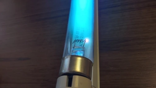 огонь лампэ, озонирут, брызжет фиолетом, пахнет как больничка