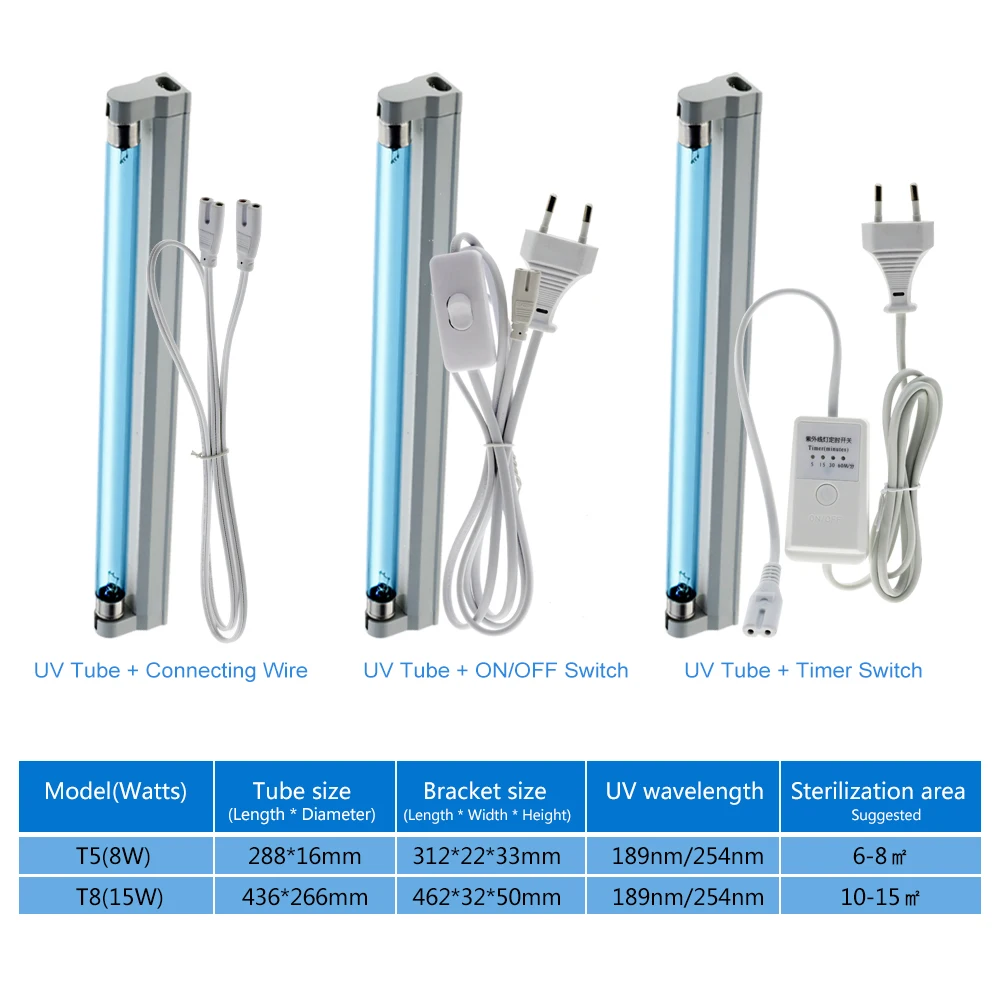 8 Вт 15 Вт бактерицидсветильник свет убивает бактериальный клещ 220 В T5 T8 трубчатая лампа озоновый Ультрафиолетовый стерилизатор для спальнибольницыванной комнаты