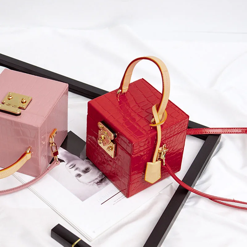 Винтажный цветной Жесткий Чехол, сумка из натуральной кожи, сумка на плечо, женская сумка с замком, чехол, модная маленькая коробка, женская сумка через плечо