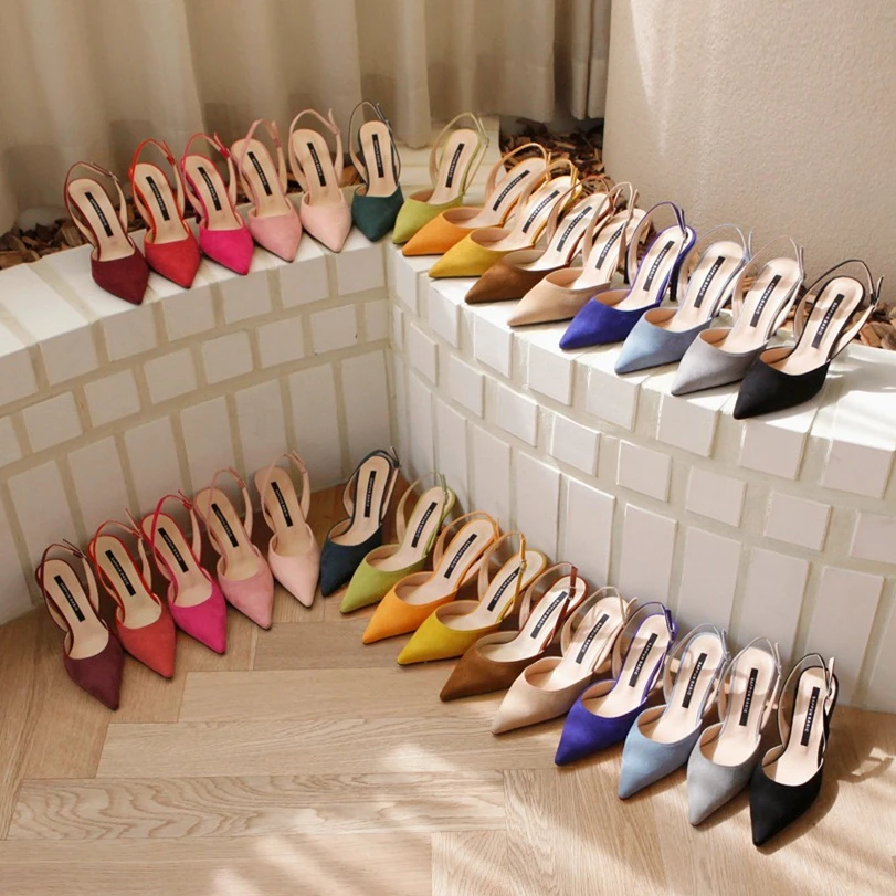 Женские босоножки на высоком каблуке, летние брендовые туфли-лодочки на тонком каблуке, вечерние туфли с острым носком, без застежки, женские модельные туфли, большие размеры