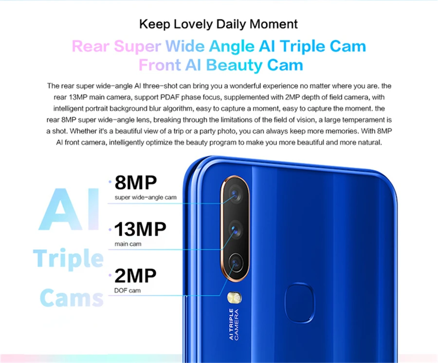 Внимание: обратите внимание, что цена в нашем магазине не включает ваш Таможенный налог в вашу странуОписаниеСистема: Funtouch OS 9,1 (на базе Android 9) . Быстрее и плавнееПроцессор: Восьмиядерный Snapdragon 665Хранение: 3G + 32G Встроенный 3G + 64G Встроенный 4G + 64GКамера: 8,0 МП + Мп в описанииСистема: Funtouch OS 9,1 (на базе Android 9) . Быстрее и плавнееПроцессор: Восьмиядерный Snapdragon 665Хранение: 3G + 32G Встроенный 3G + 64G Встроенный 4G + 64G Встроенный 6G + 64GКамера: 13.0MP + 8.0MP + 2.0MP задняя камера, 8.0MP фронтальная камераЭкран: 6,35 дюйма, экран 19,3: 9 Halo FullView, соотношение экрана к корпусу 89.04%Размеры: 159,43*76,77*8,92 мм, задняя камера МП, фронтальная камера МПЭкран: 6,35 дюйма, экран 19,3: 9 Halo FullView, соотношение экрана к корпусу 89.04%Размер: 159,43*76,77*8,92 мм2G GSM:850/900/1800 МГц;2G CDMA:BC0;3G TD-SCDMA:B34/B39;3G WCDMA:B1/B5/B8;3G CDMA2000:BC0;4G FDD-LTE:B1/B3/B5/B8;4G TDD-LTE:B34/B38/B39/B40/B41