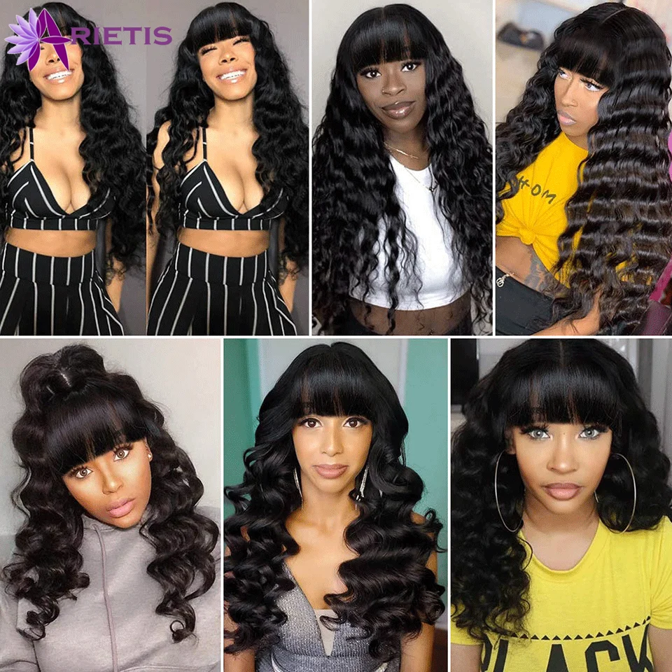 Парики из человеческих волос с челкой для женщин 8-26 дюймов без клея без шнурка парик Remy полный парик с челкой