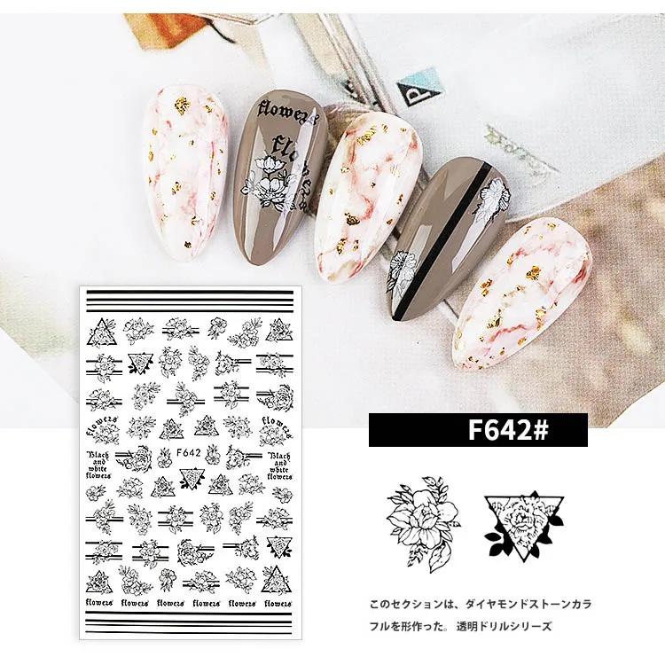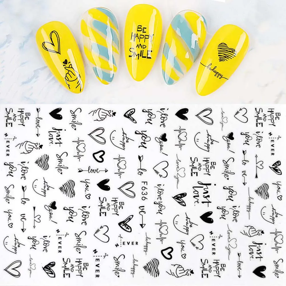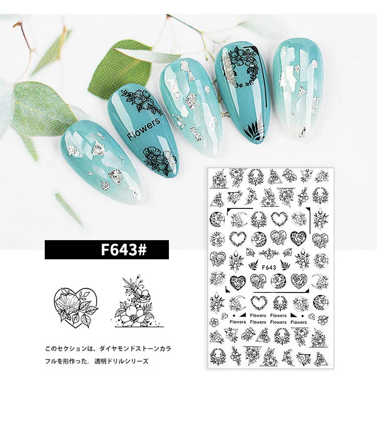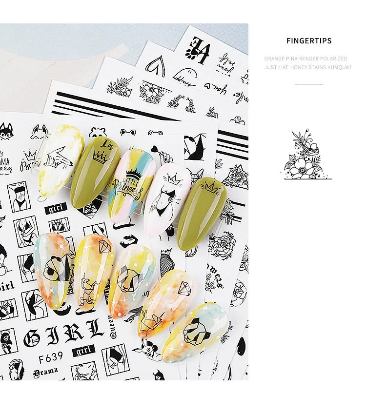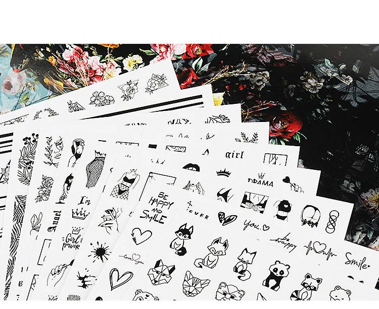 1 шт. черная линия стикеры 3D на ногти Nail Art листья цветок панда сердечко узор клейкие Переводные картинки Маникюр украшения для ногтей