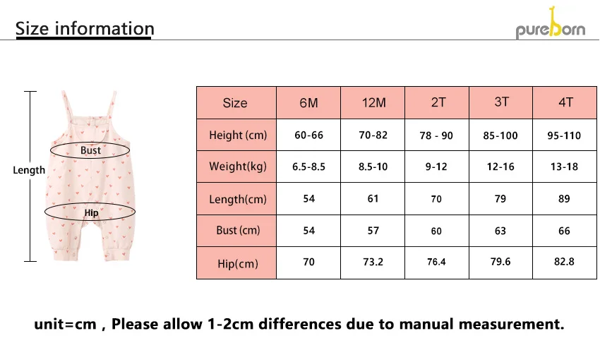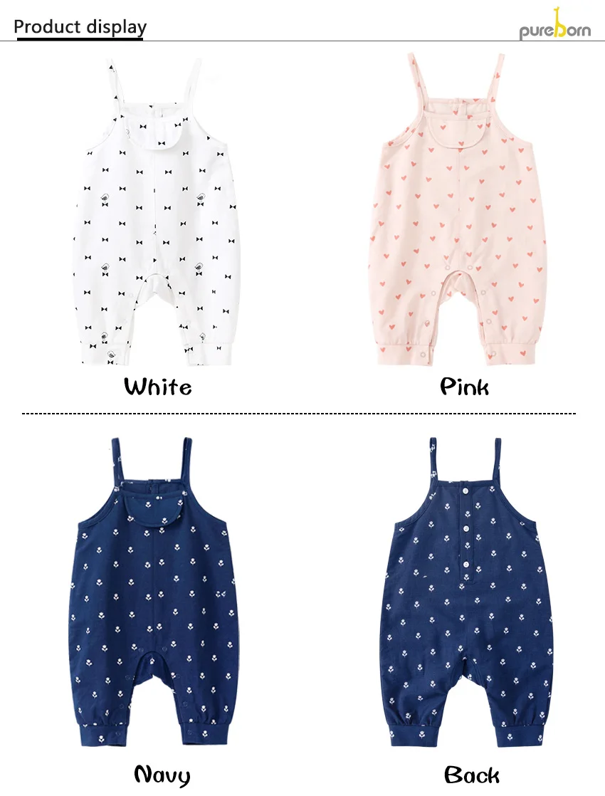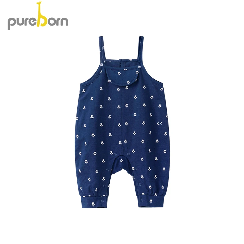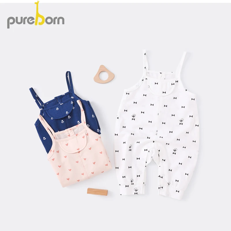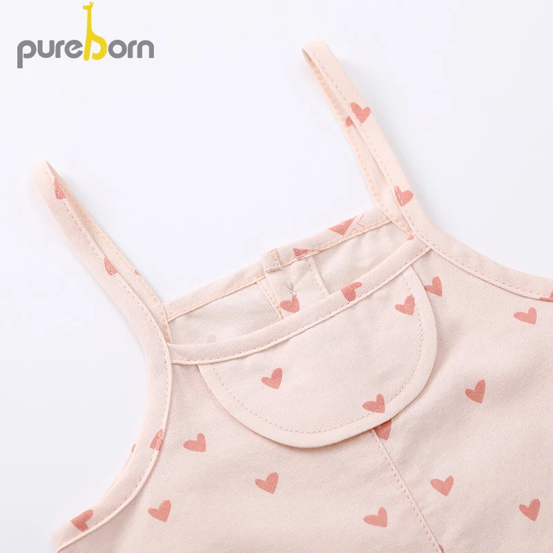 Комбинезон для маленьких девочек Pureborn, хлопковый комбинезон с подтяжками ярких цветов для маленьких девочек
