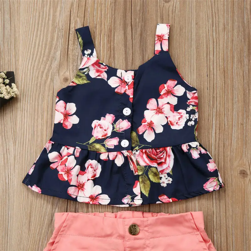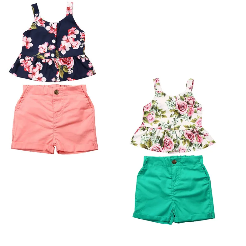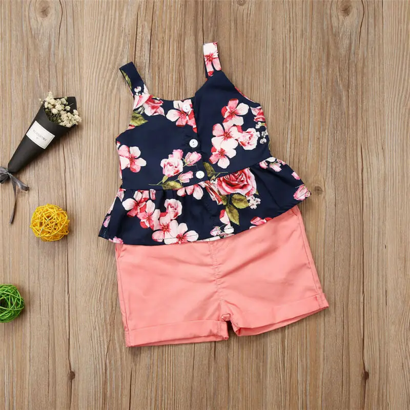 2 шт., летние топы и шорты без рукавов с цветочным принтом