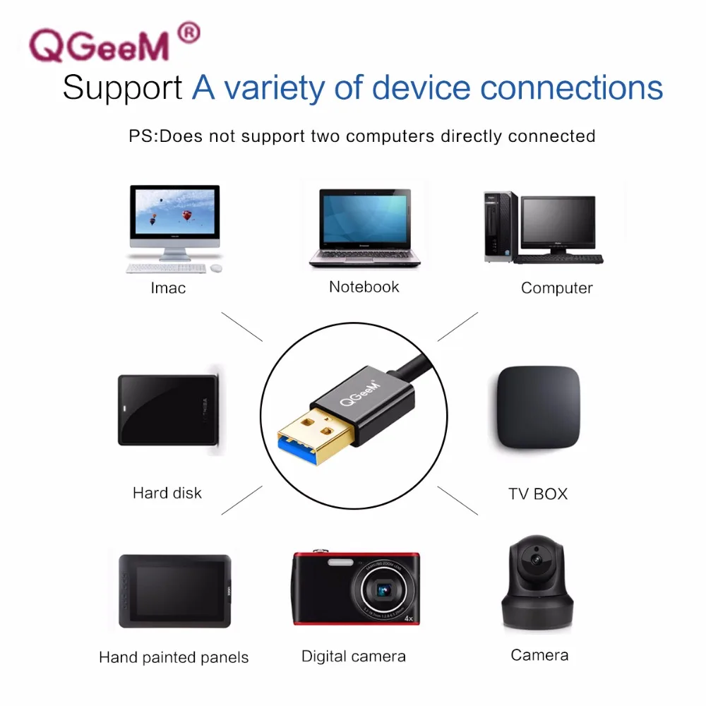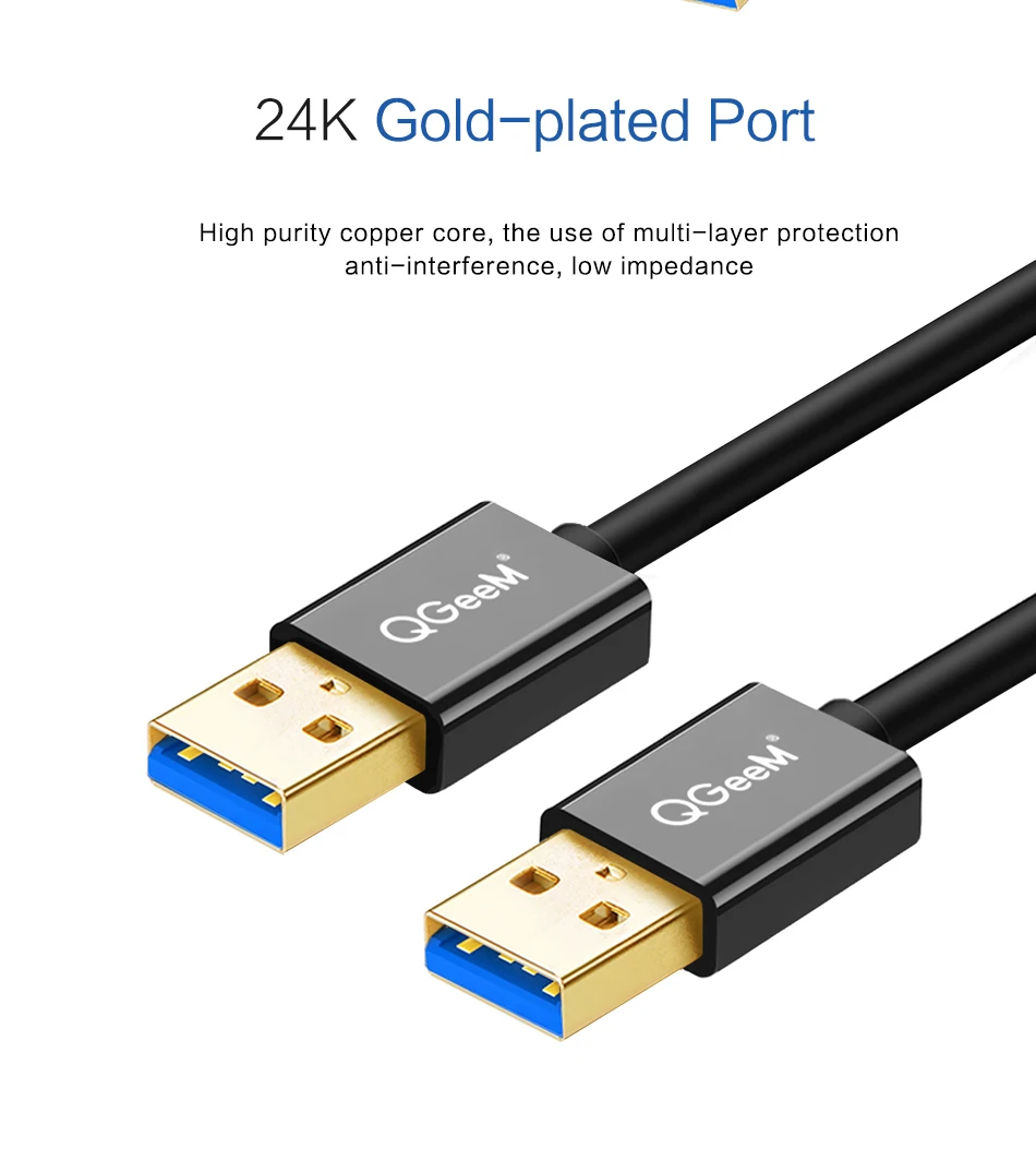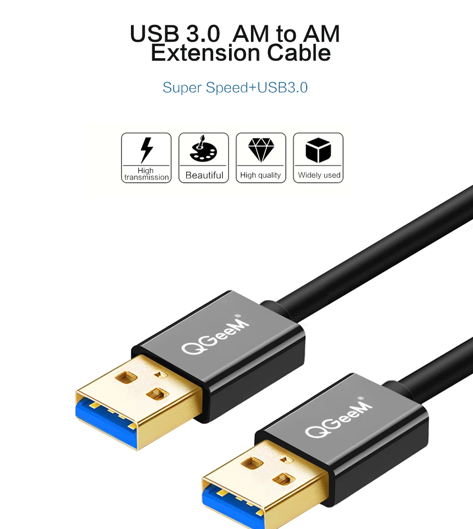 Кабель-удлинитель USB 3.0 (штекер)USB 3.0 (штекер) QGeeM, для передачи данных, радиатора, жесткого диска