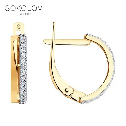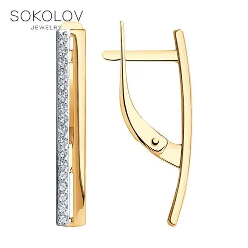Серьги SOKOLOV из золота с фианитами, Золото, 585, Женские, Серьги 2022 тренд, Оригинальная продукция