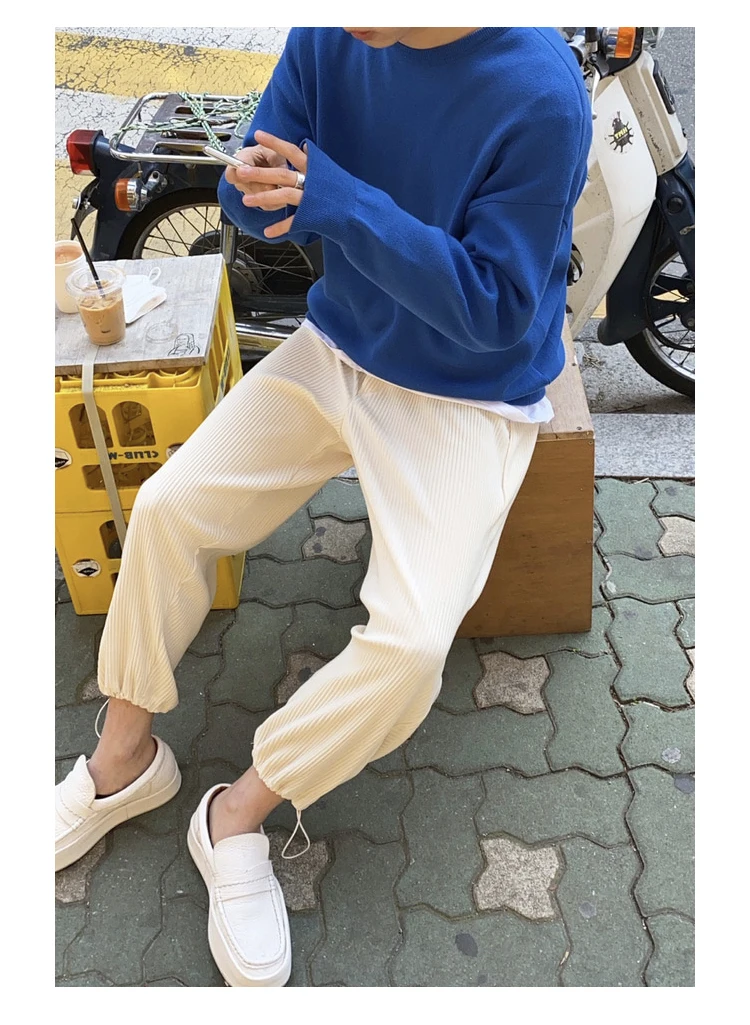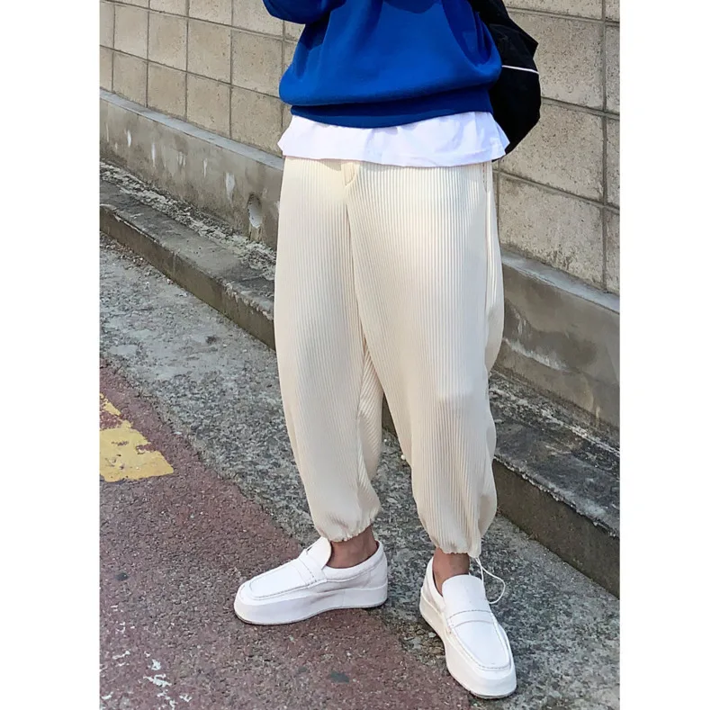 Новинка весна-осень 2020 Популярные однотонные Свободные плиссированные леггинсы для молодежи модные повседневные дикие прямые брюки бежевыечерныесерые