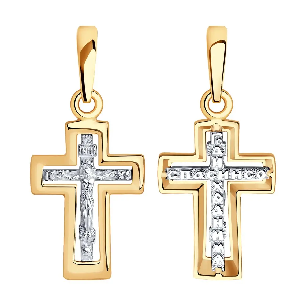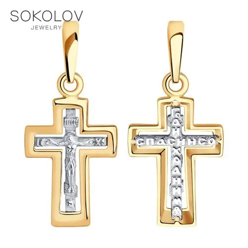 Крест SOKOLOV из комбинированного золота, Золото, 585, Оригинальная продукция