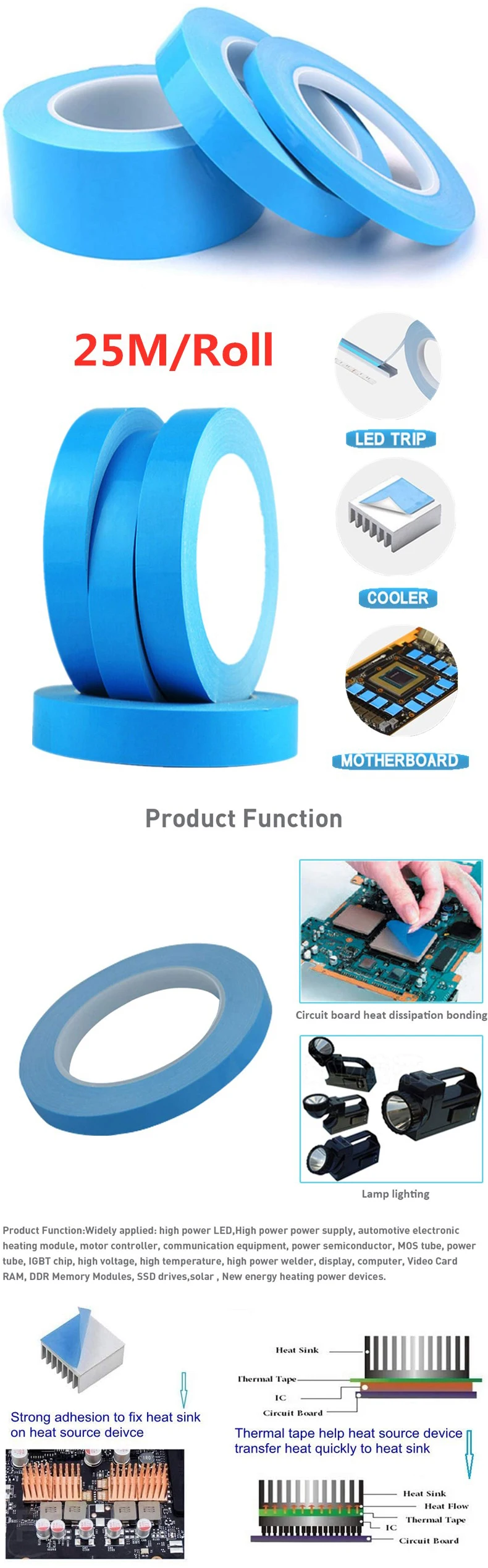 25 м двухсторонняя Теплопроводящая клейкая лента для ЦП чип теплоотвод PCB теплоотводящая лента