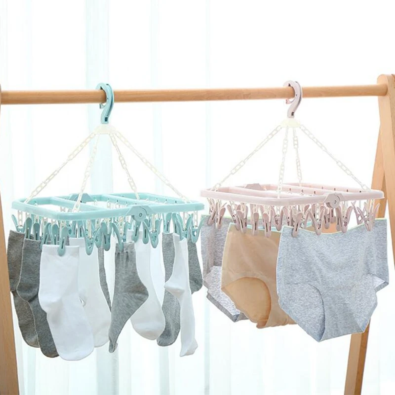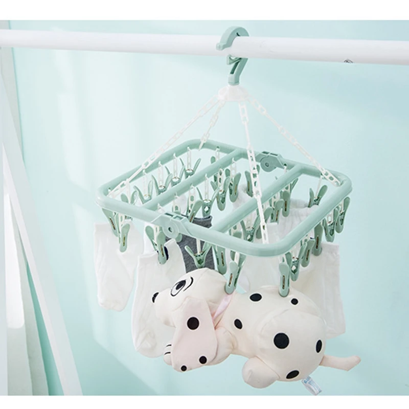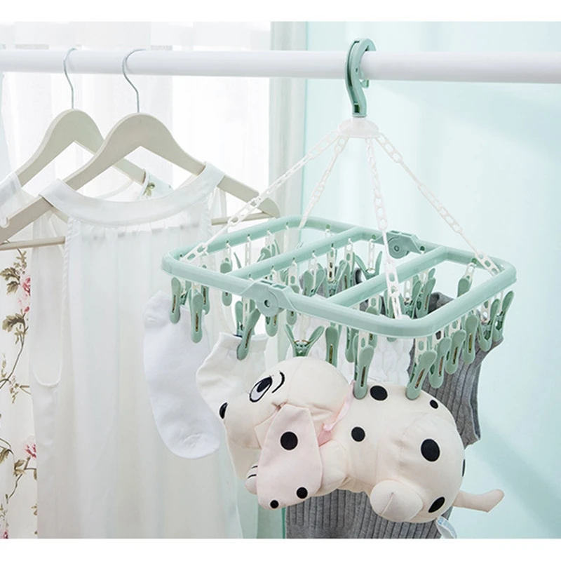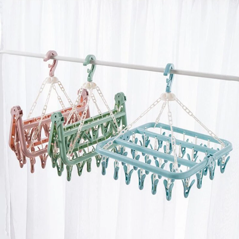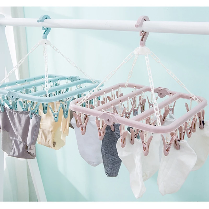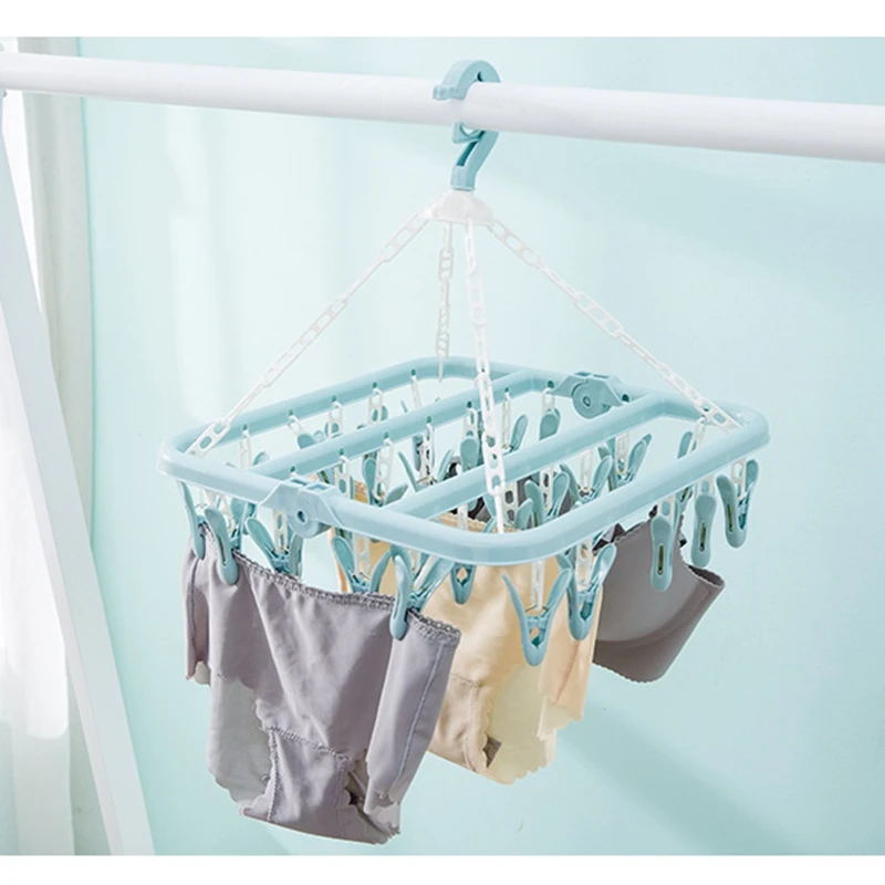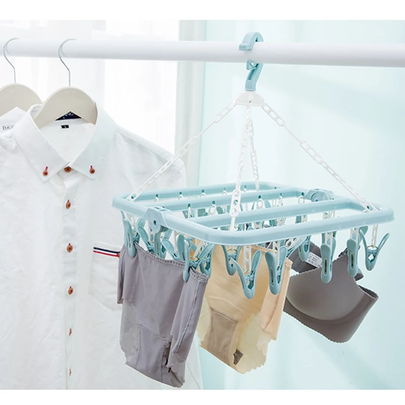 Складная вешалка-сушилка для одежды, для детей, взрослых, 32 зажима, ветрозащитная, для носков, нижнего белья, пластиковая сушилка