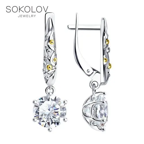 Серьги SOKOLOV из серебра с горным хрусталем, Серебро, 925, Женские, Серьги 2022 тренд, Оригинальная продукция