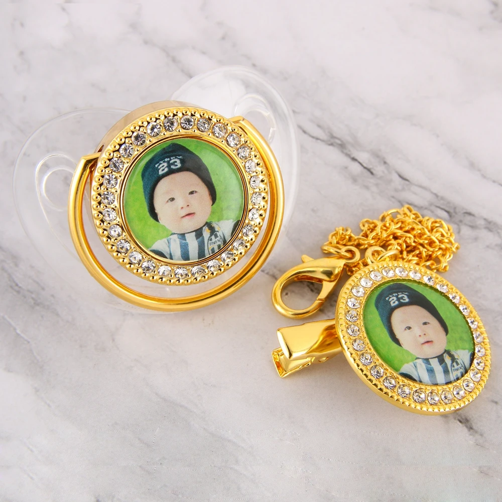 Персонализированные Имя И фото Bling пустышка и ребенок Пустышка клип Роскошные Детские пустышки BPA бесплатно ребенок Chupeta леденец Прямая доставка