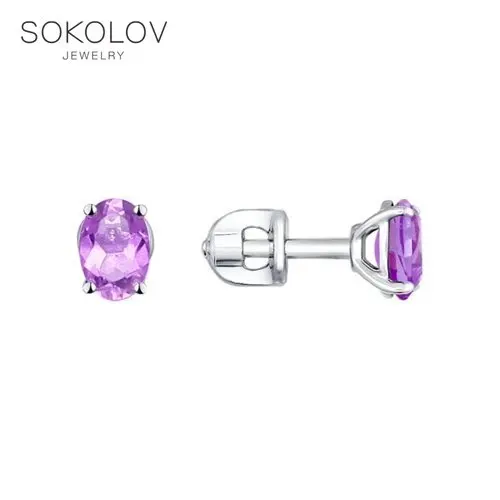 Серьги-пусеты SOKOLOV из серебра с аметистами, Серебро, 925, Женски...