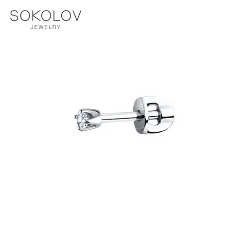 Одиночная серьга SOKOLOV из серебра с фианитом, 1 шт., Серебро, 925, Унисекс, Серьги 2022 тренд, Оригинальная продукция