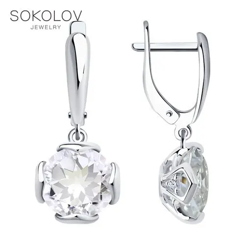 Серьги SOKOLOV из серебра с горным хрусталем и фианитами, Серебро, 925, Женские, Серьги 2022 тренд, Оригинальная продукция