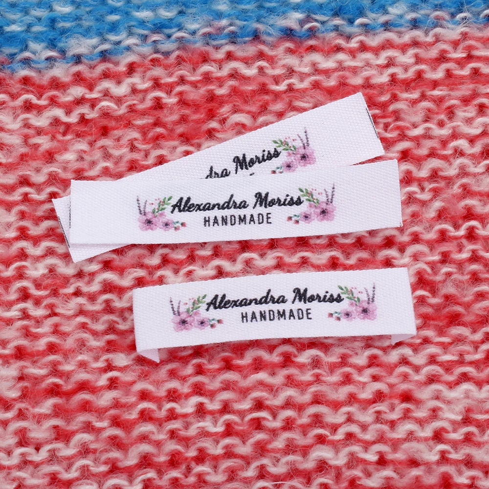Пользовательские швейные этикетки, персонализированный бренд, органические хлопковые Ленточные этикетки, цветы, название бизнеса (MD3037)