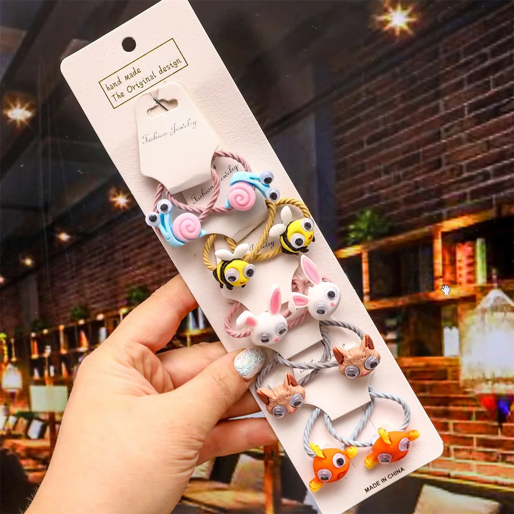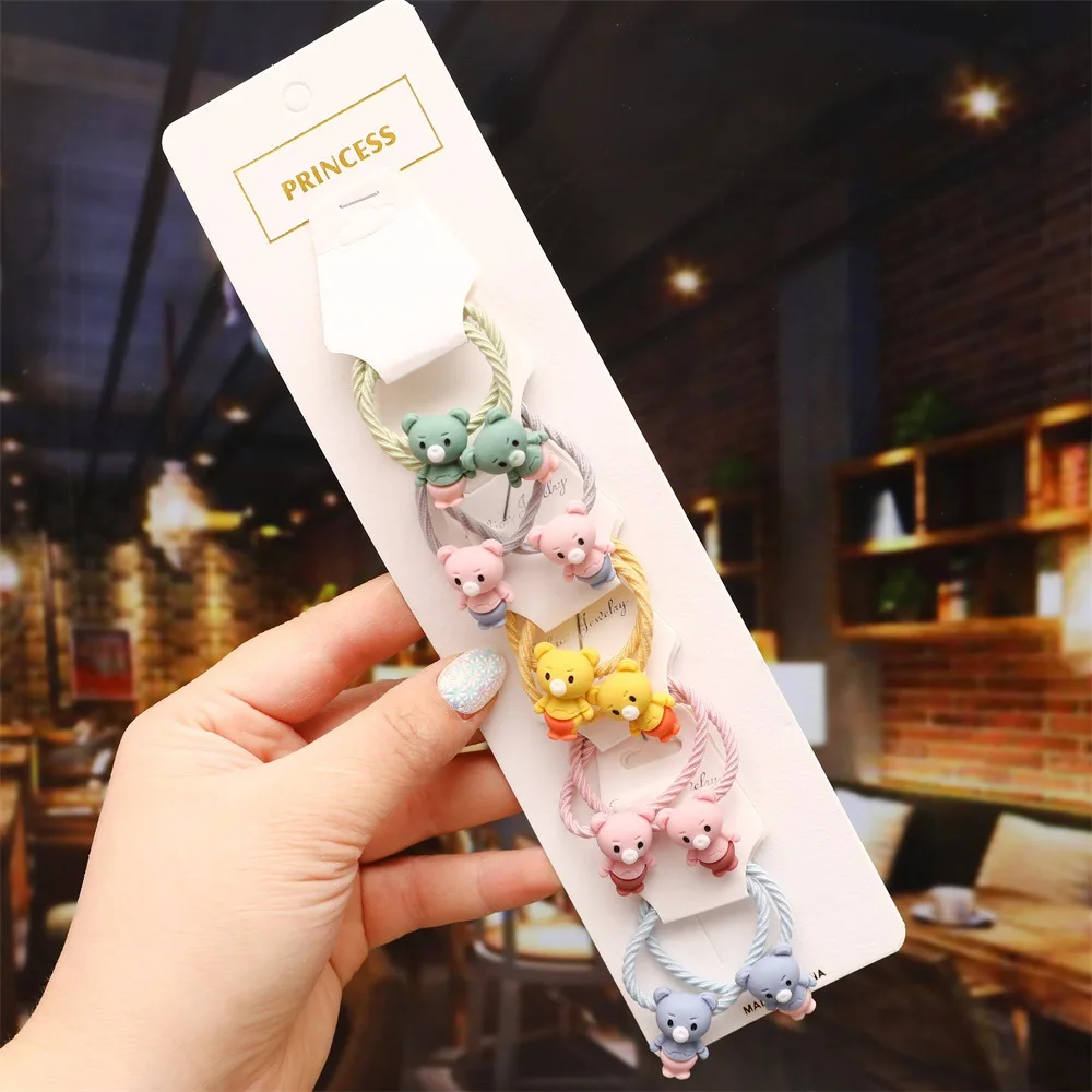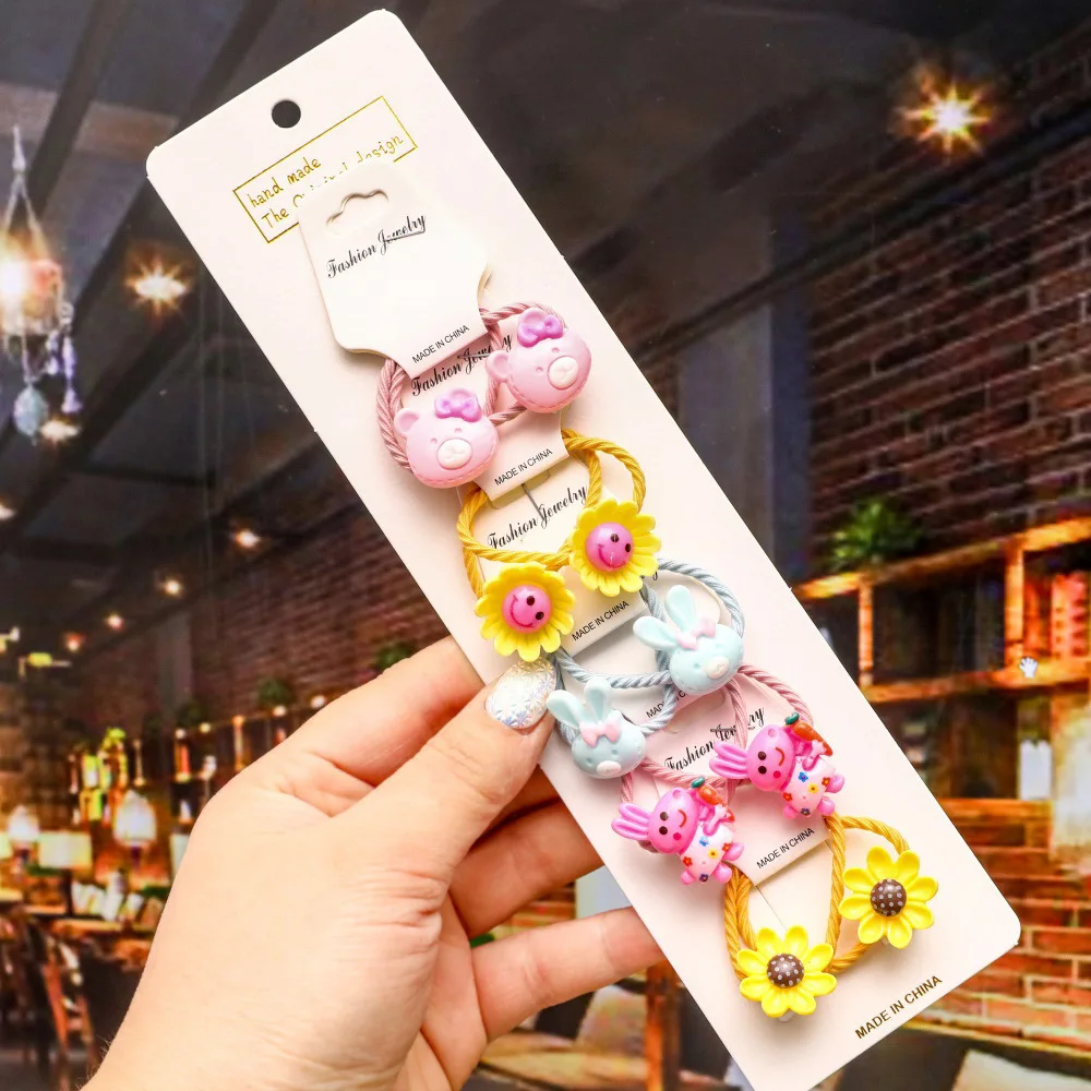 Резинка для волос детская, с мультяшными животными, цветами, резиновые ленты аксессуары