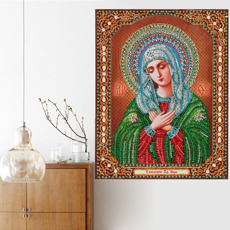 Алмазная живопись, полностью круглая религиозная искусственная рели...