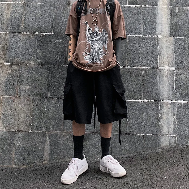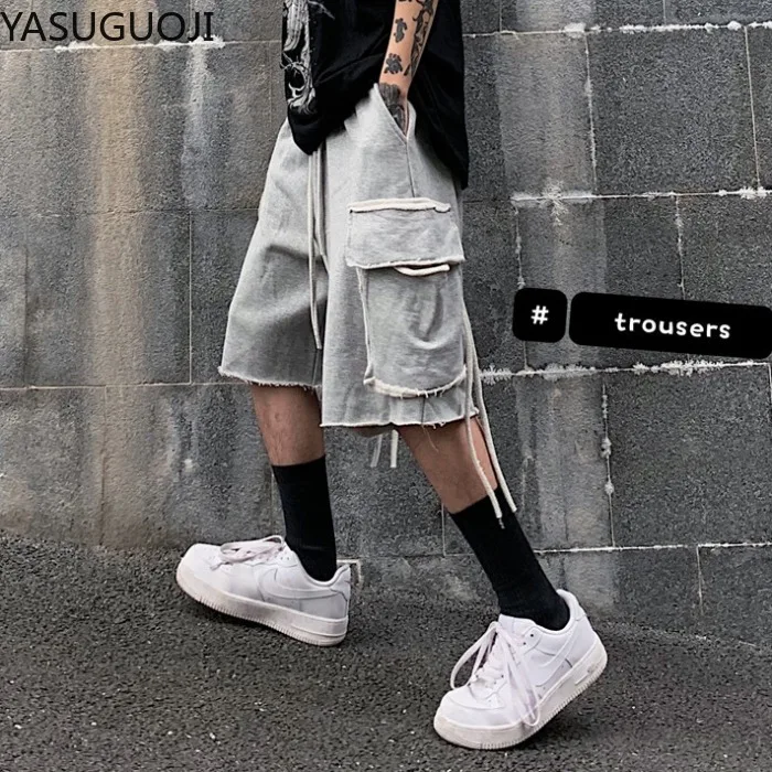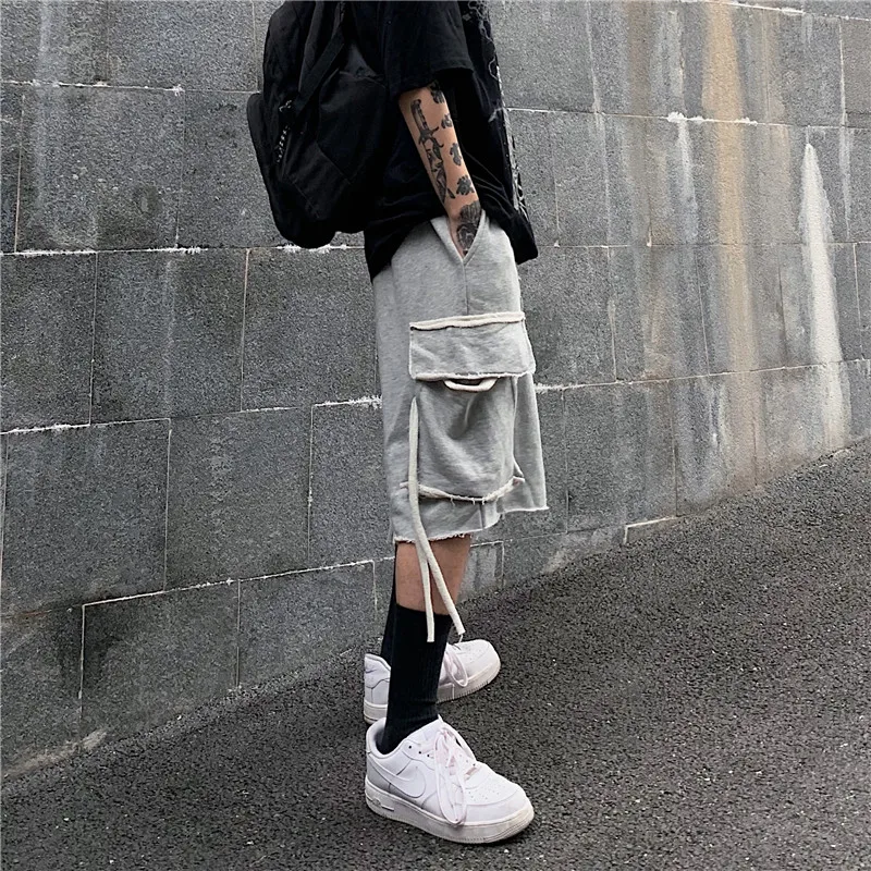 Мужские хлопковые шорты-карго, с карманами, однотонные, камуфляжные, длиной до колен, лето