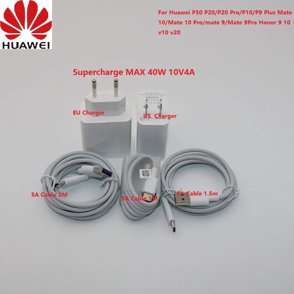Оригинальное быстрое зарядное устройство HUAWEI, 40 Вт, 10 в4 а 5 А, кабель Type-C P30 Pro Mate 20 Pro X RS Mate10 P20 P10 Mate10 Magic 2