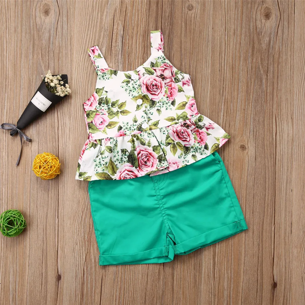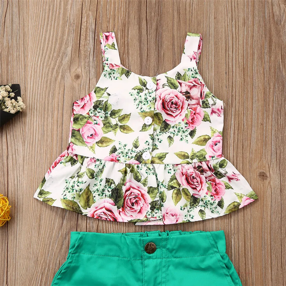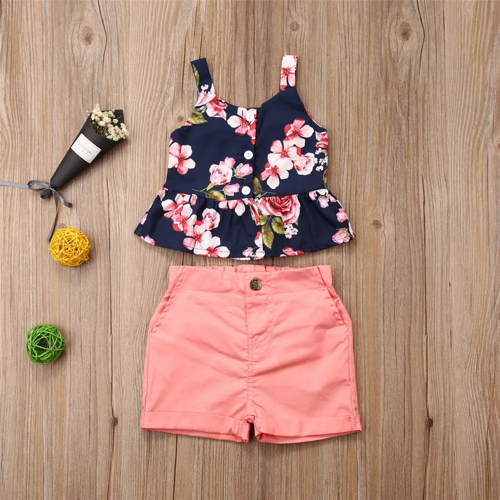 От 1 до 6 лет комплекты летней одежды из 2 предметов для новорожденных девочек топы с цветочным принтом, шорты штаны Одежда, комплект