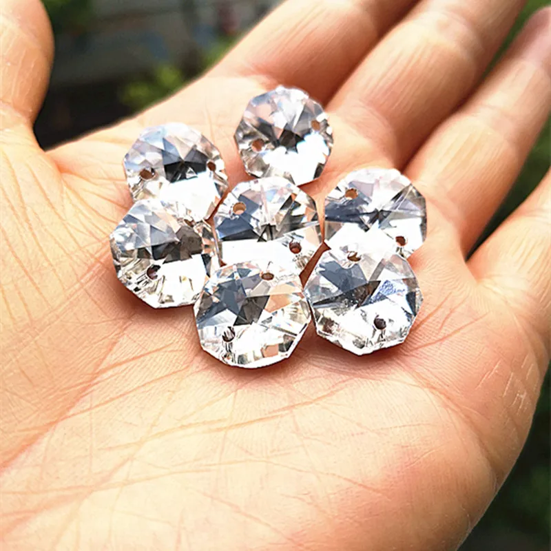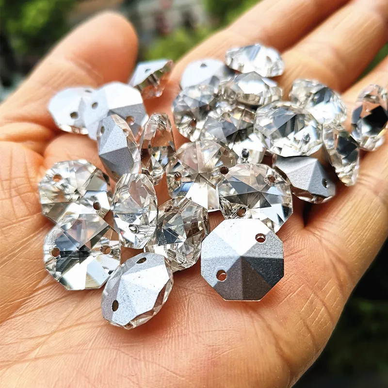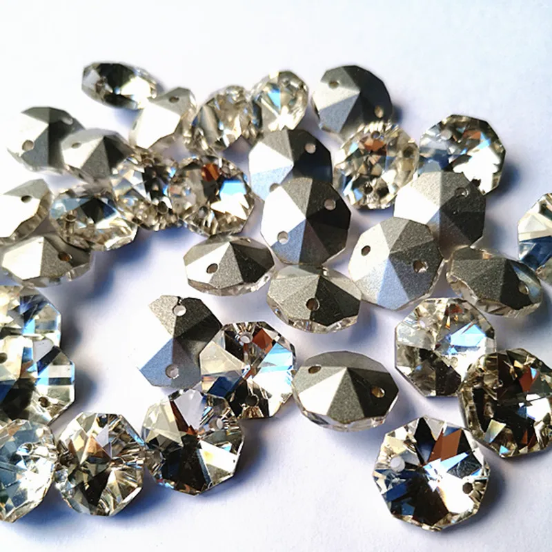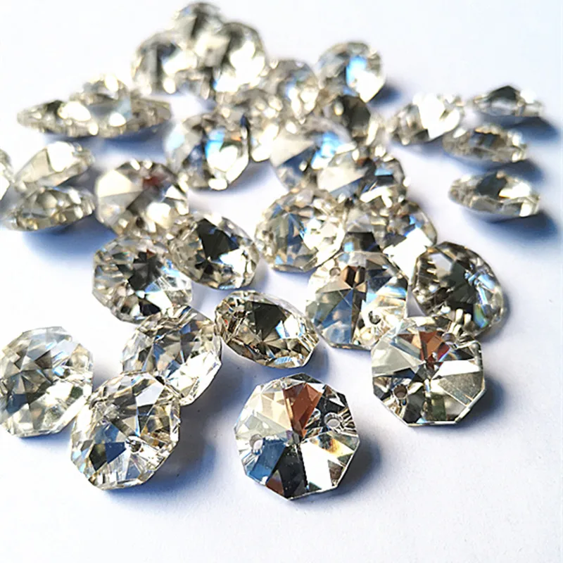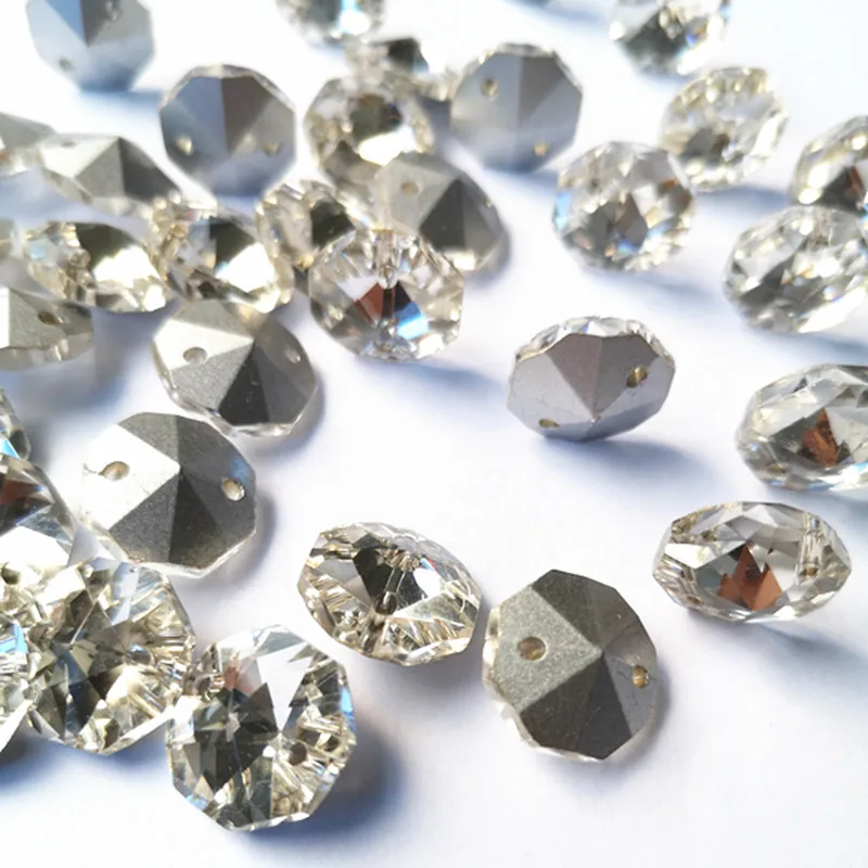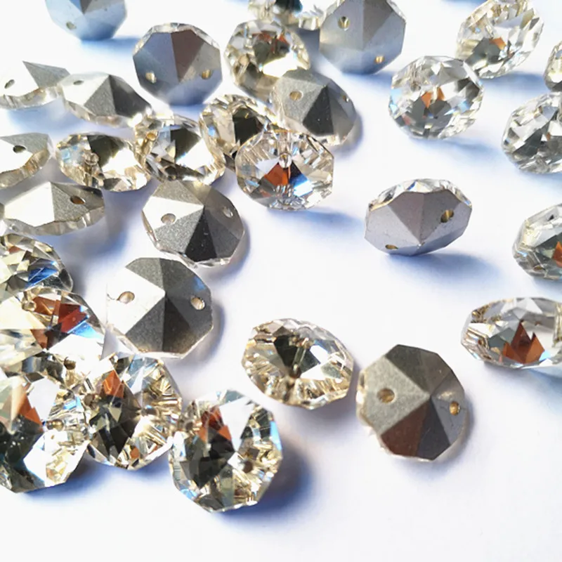 Высокое качество 1000 шт прозрачные посеребренные 14 мм K9 хрустальные Восьмиугольные бусины в 2 отверстия (Бесплатные Кольца) для люстры части и занавески бусины
