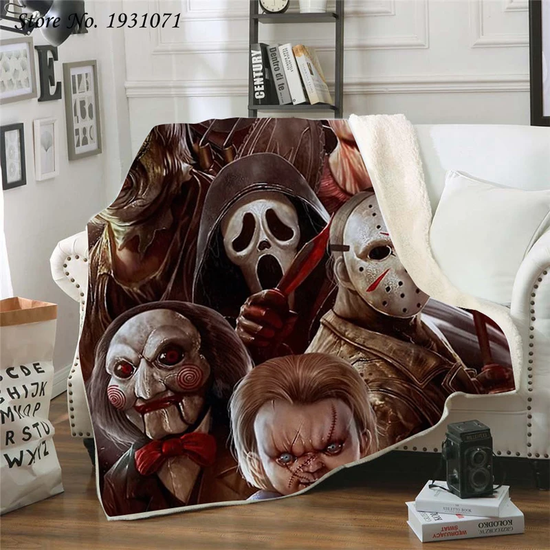 Флисовое одеяло с 3D-принтом американского фильма ужасов для кровати, толстое одеяло, модное покрывало, шерпа, одеяло для взрослых и детей 08