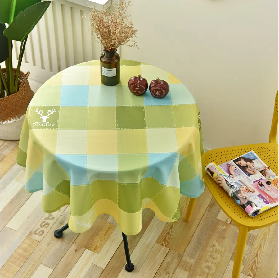Круглая скатерть в нордическом стиле, простая водонепроницаемая ткань для круглого стола для дома, ресторана, отеля, с принтом в клетку