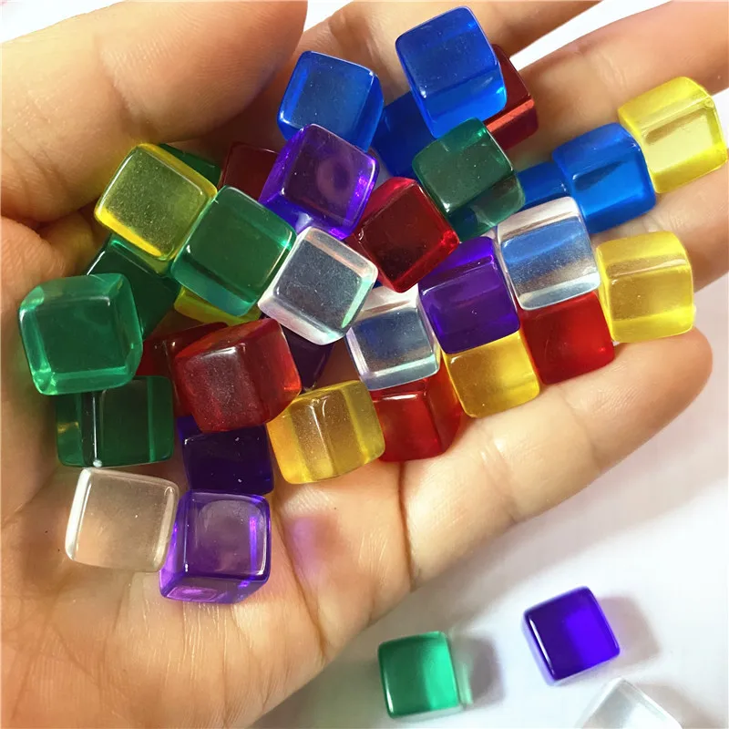 50 шт.компл. 10 мм прозрачные цветные хрустальные кубики блоки пустые D6 кубики шахматы кубики с прямоугольным ситечком для головоломки настольные игры