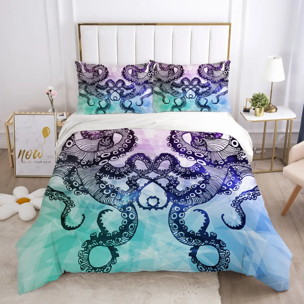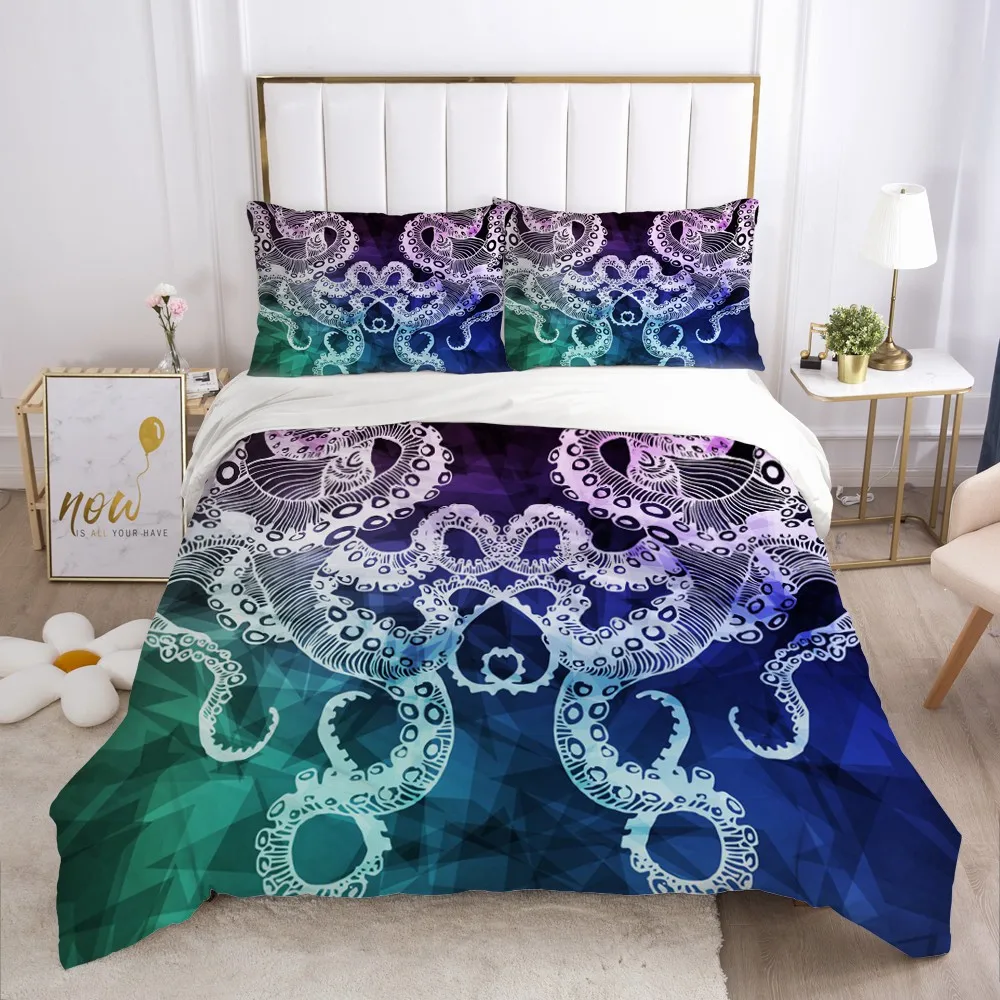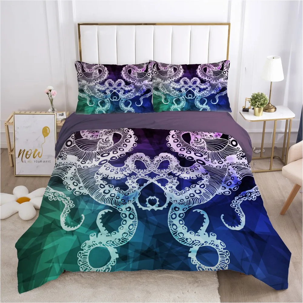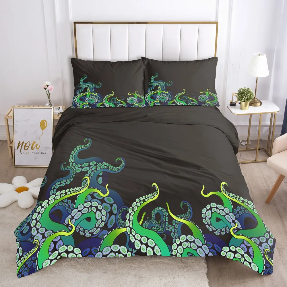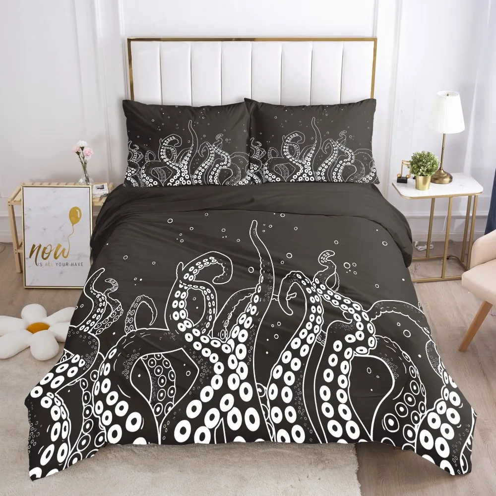 Комплект постельного белья Fanaijia, черного цвета, двуспальный, с 3D-принтом осьминога, пододеяльник и наволочка, постельное белье с изображением животных, оптовая продажа