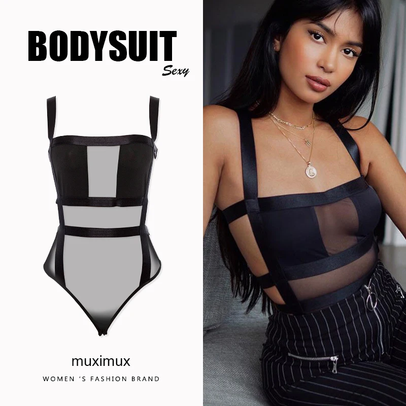 Лето 2020, женское сексуальное боди, модное повседневное облегающее черное боди на бретелях для вечеринки, клуба, Сетчатое боди для женщин