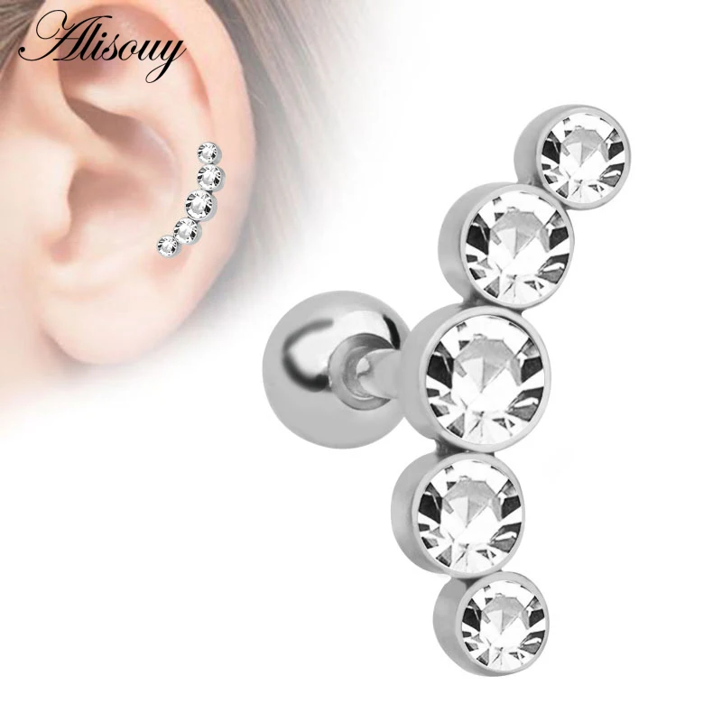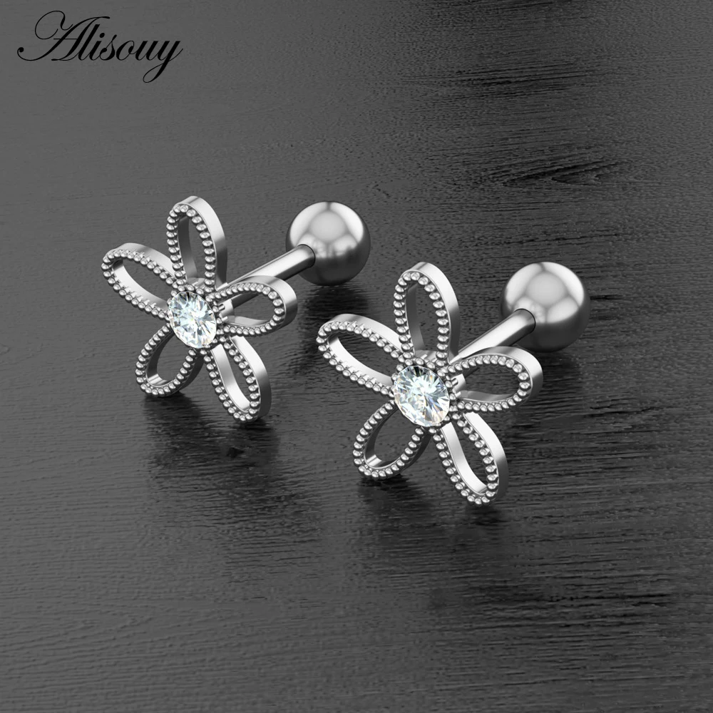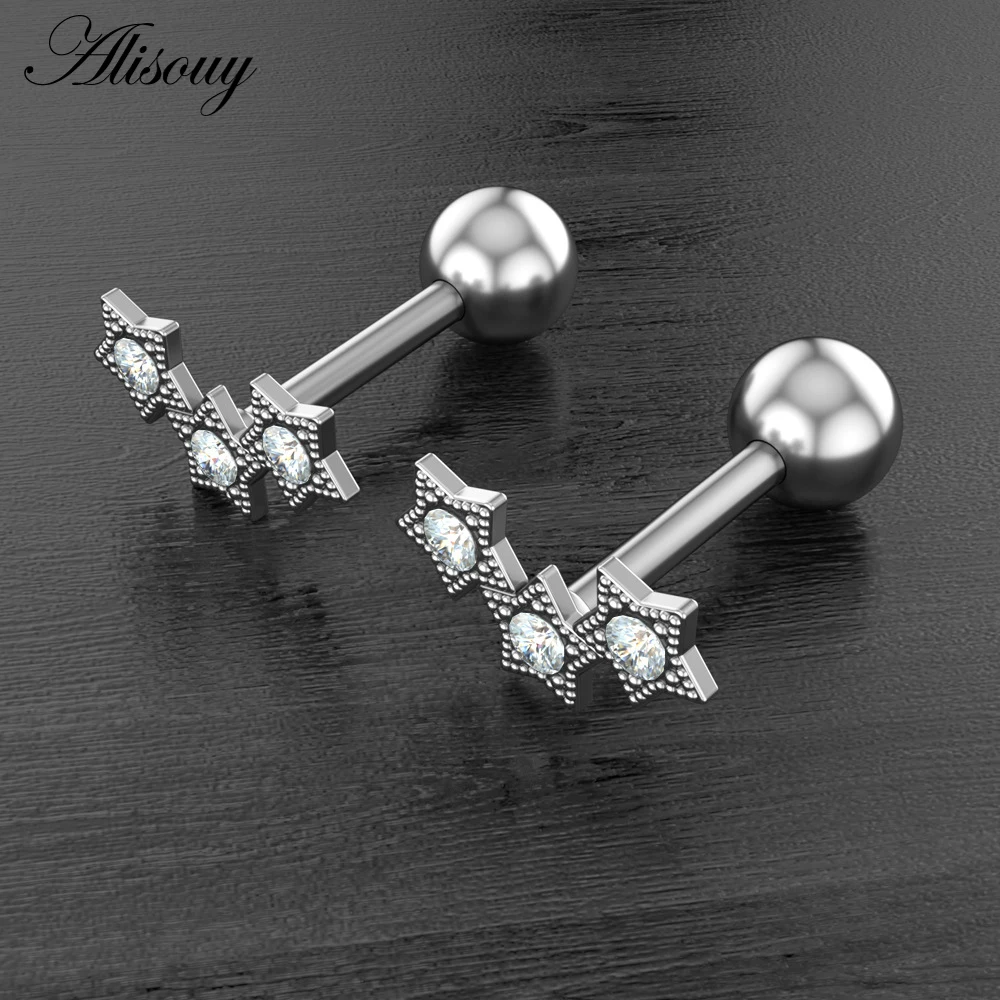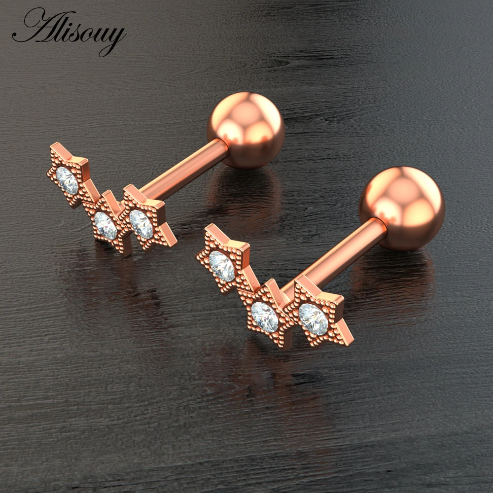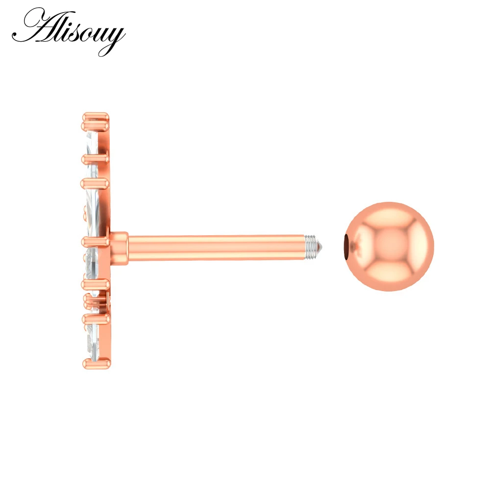 Женские серьги-гвоздики из нержавеющей стали, с цирконием, листьями, сердцем, звездой, цветком, 1 шт., серьги, Надеваемые На ушной хрящ