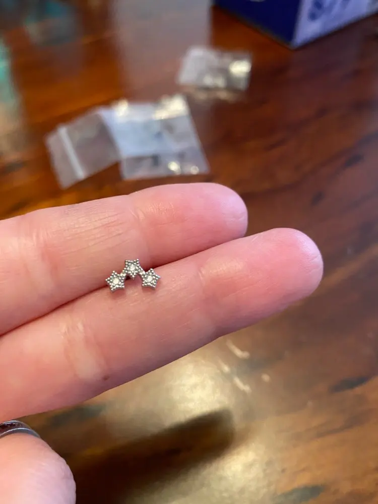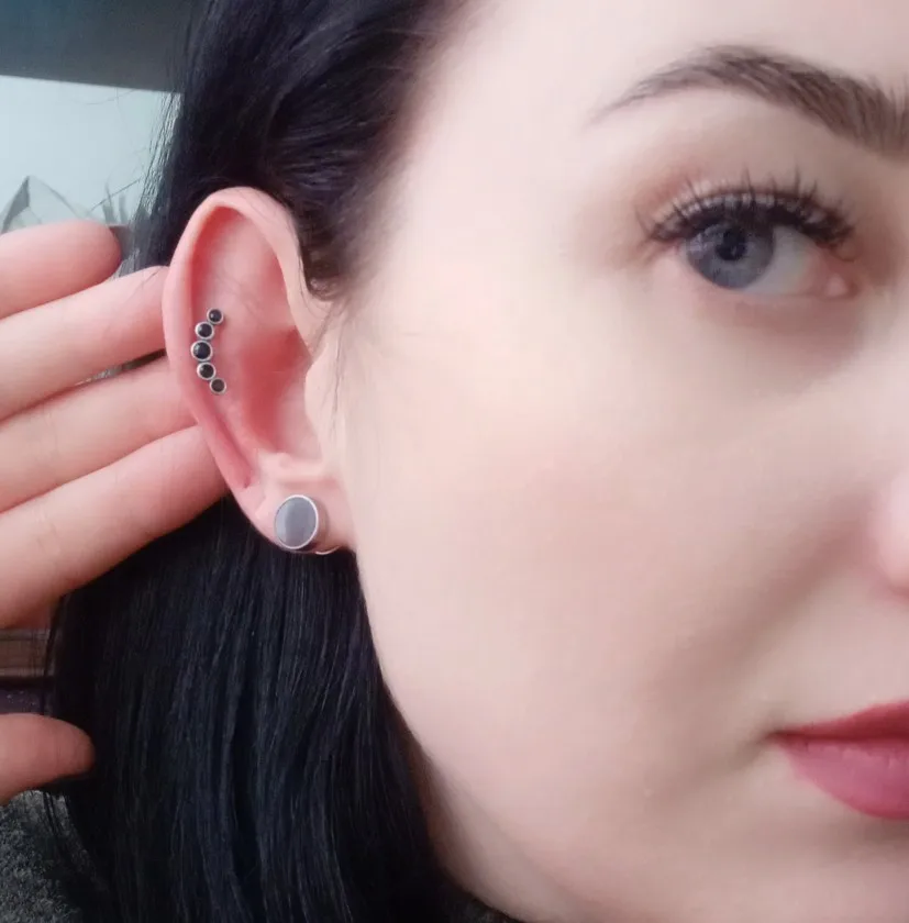 Небольшие повреждения, потому что сережки имеют короткую стойку и, к сожалению, не подходят мне для helixa, потому что я не могу пойти domkn① :(