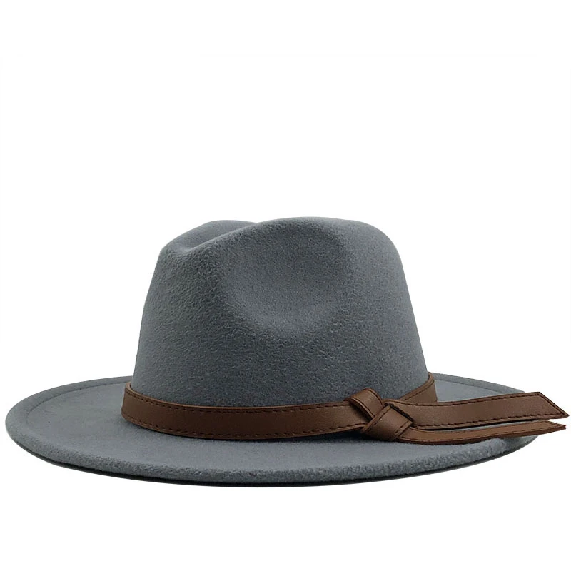 Женская и Мужская шерстяная шляпа Fedora с кожаной лентой, элегантн...