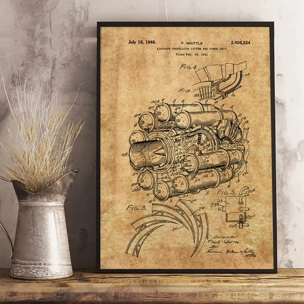 Аэроплан Jet Engine, патент, ВИНТАЖНЫЙ ПЛАКАТ, авиационное искусство, наука, холст, живопись, настенные картины, авиационное домашнее украшение