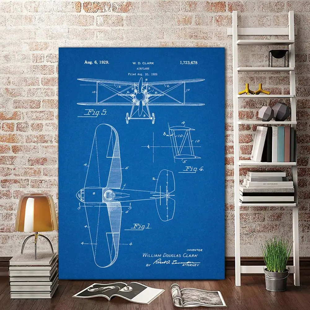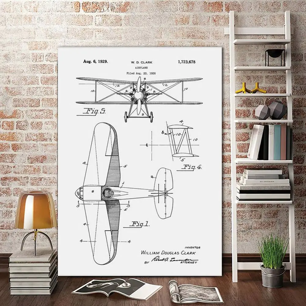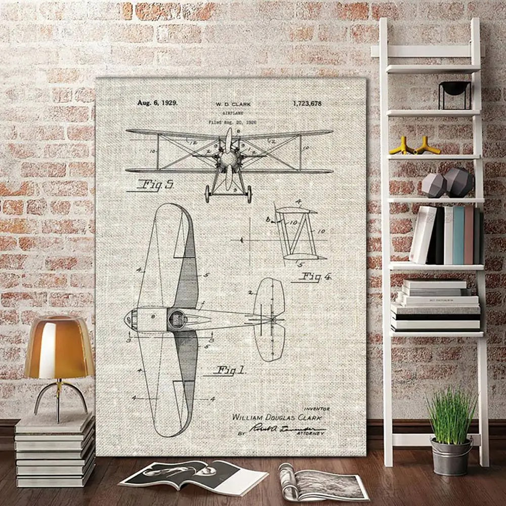Тканевые плакаты и принты с космическим шаттлом, Biplane, запатентованная печать, научная схема космоса, винтажные плакаты, украшение для стен в авиационном стиле