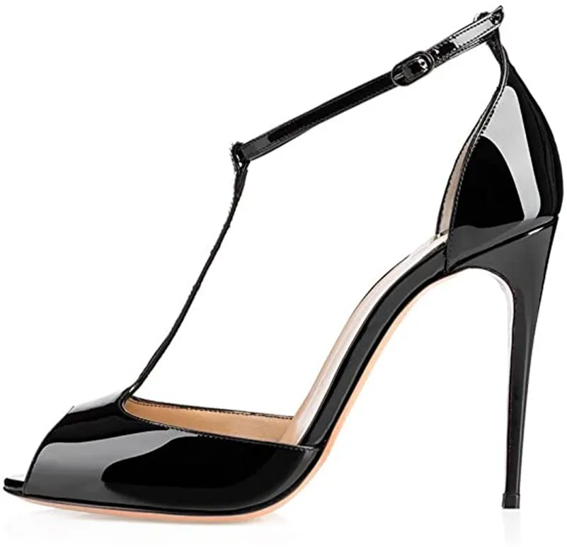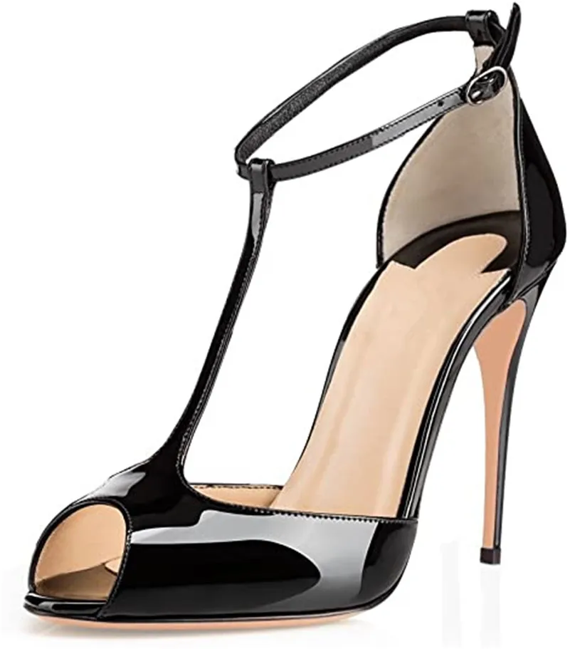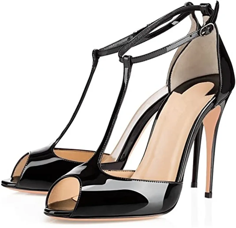 Женские босоножки с открытым носком и Т-образным ремешком, с застежкой на щиколотке и пряжкой, модельные туфли на высоком каблуке, белые, черные туфли-лодочки, женская обувь
