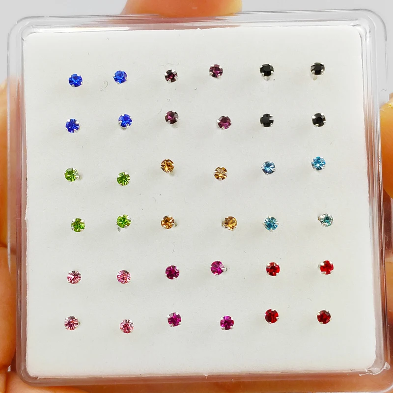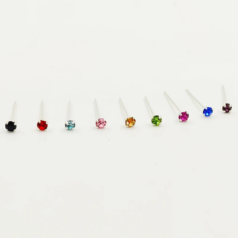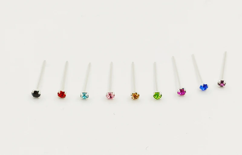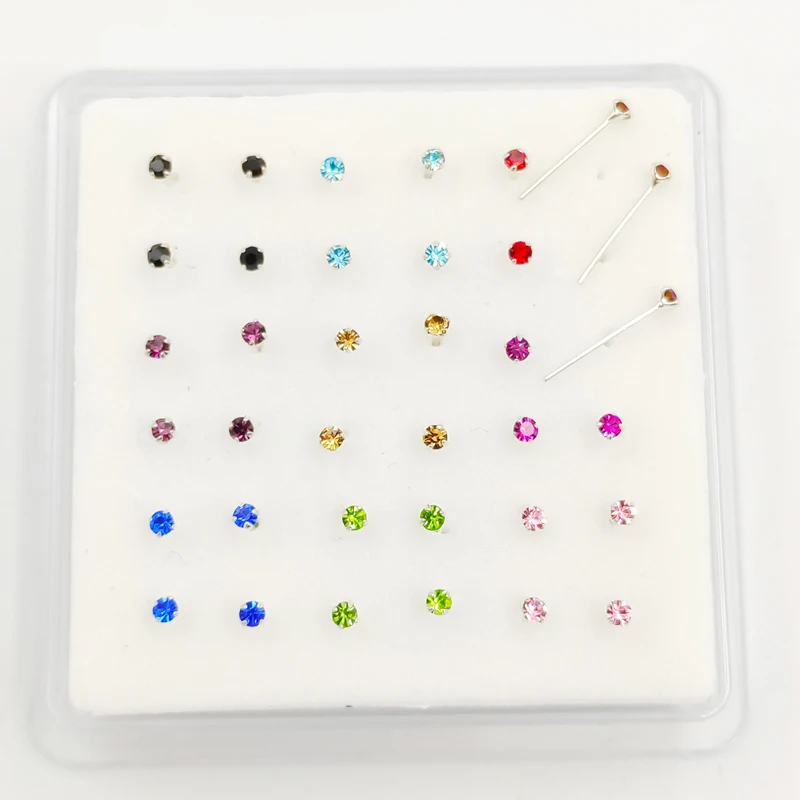 925 пробы Серебряный смешанный цвет 2 мм Кристалл нос шпилька индийский нос булавка Кость 36 шт.упак.