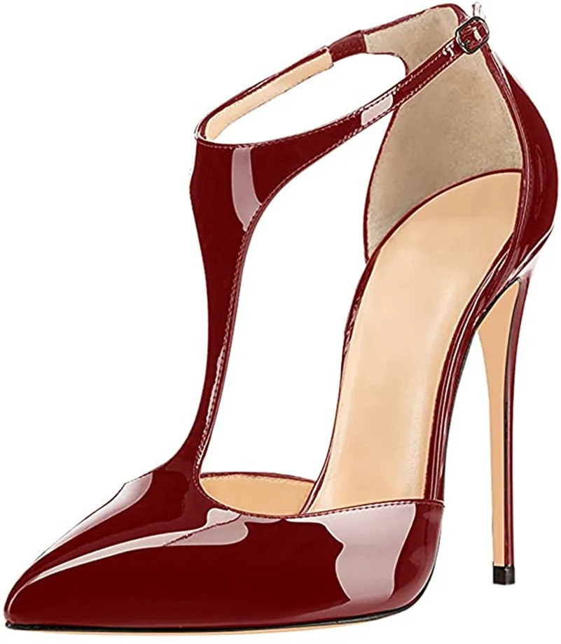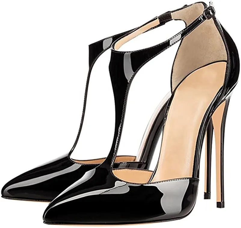 Женские туфли-лодочки на высоком каблуке с острым носком и Т-образным ремешком, классические туфли на шпильке 12 см, женские туфли, женская обувь большого размера