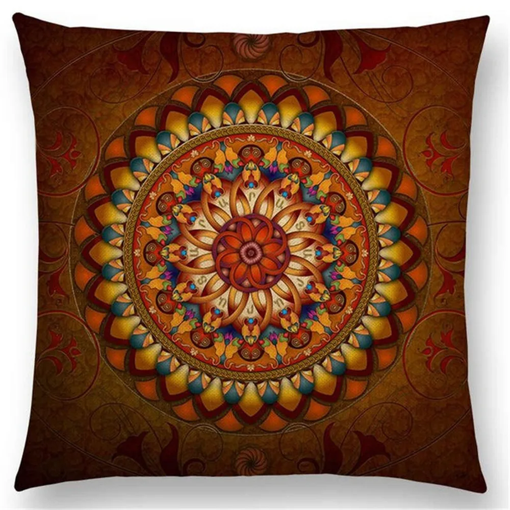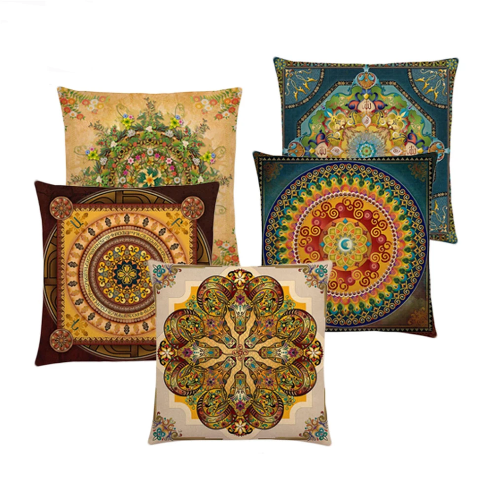 Декоративная наволочка Мандала для дивана, льняная наволочка для по...