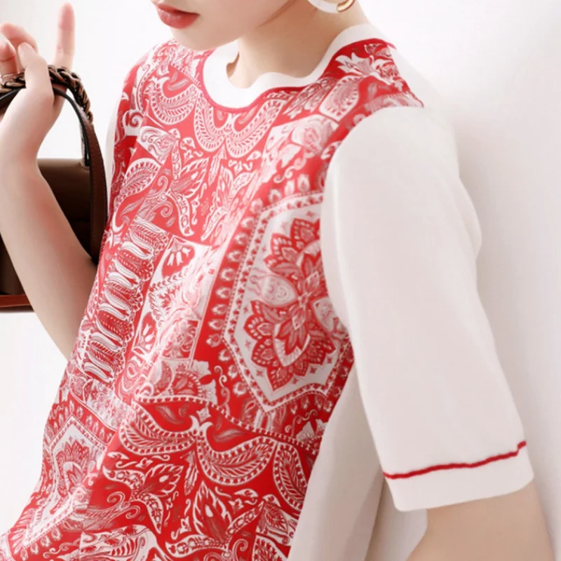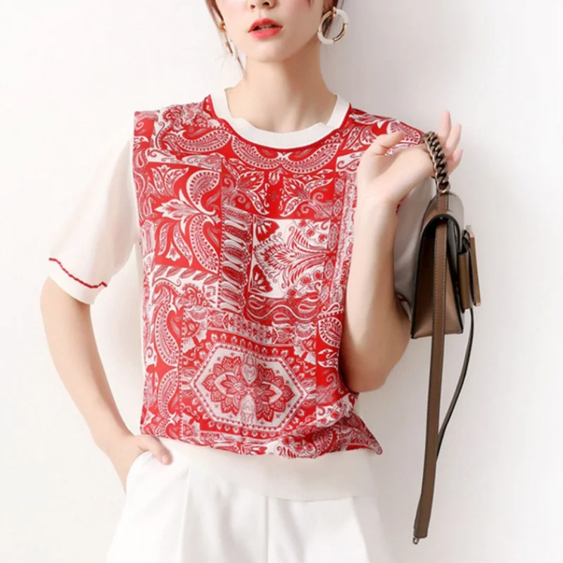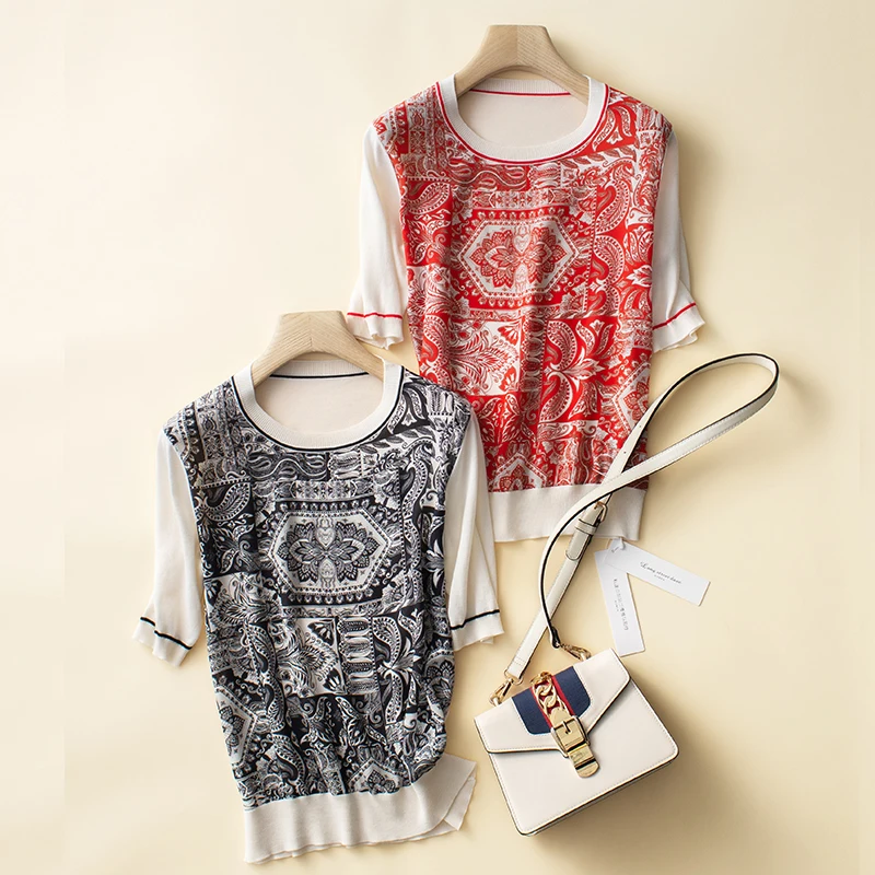 Футболка женская шелковая, с круглым вырезом и коротким рукавом