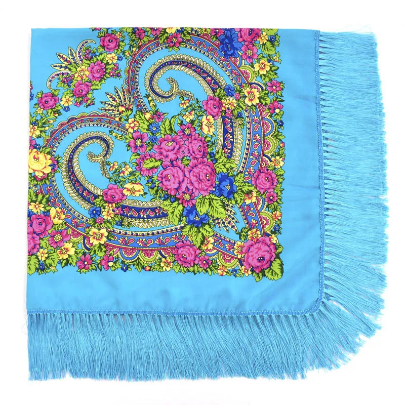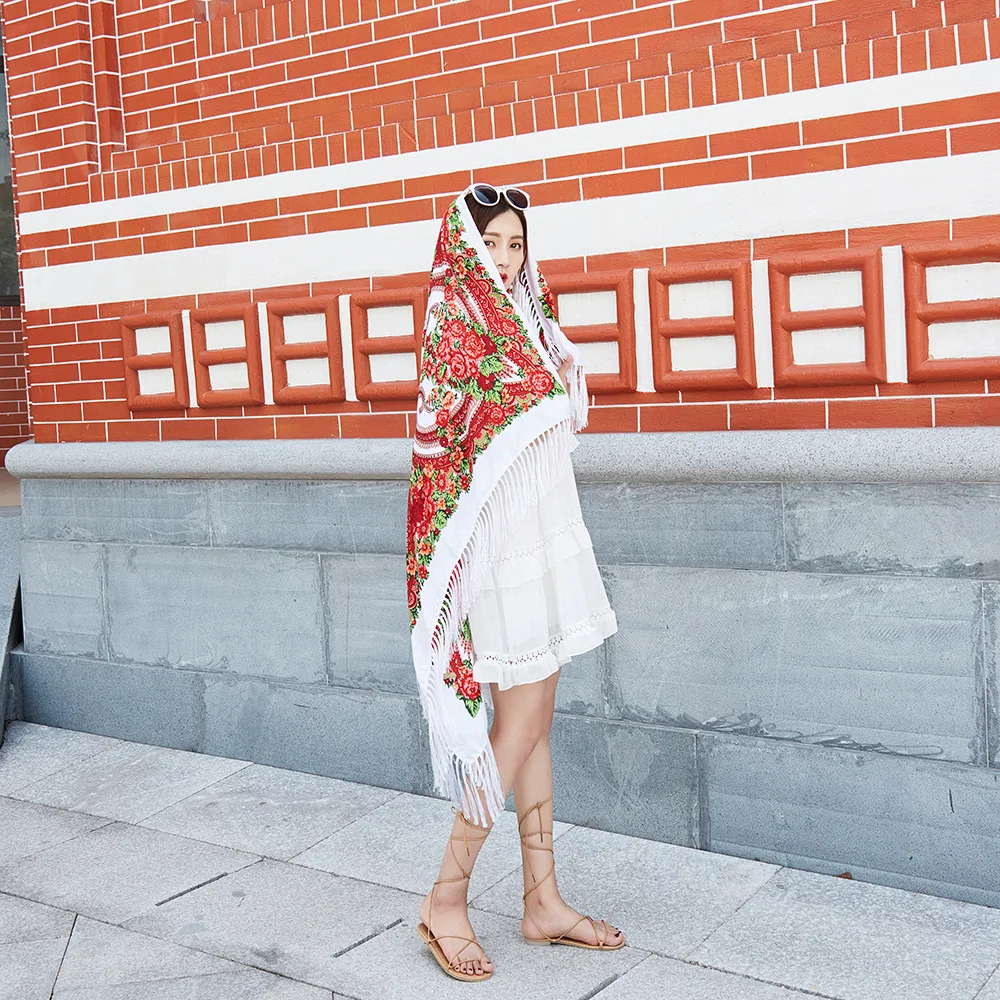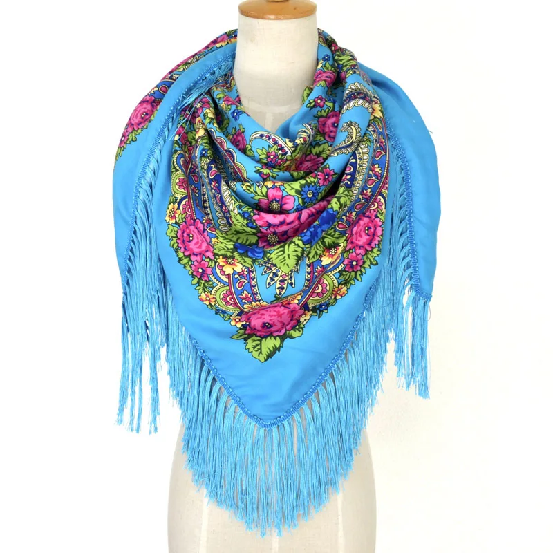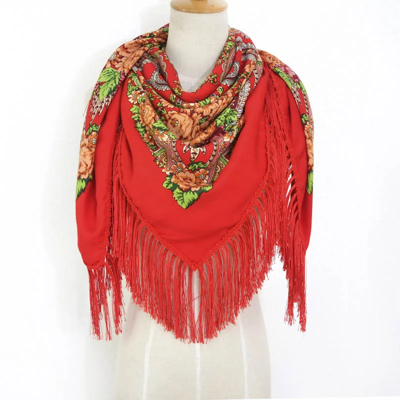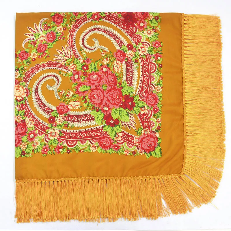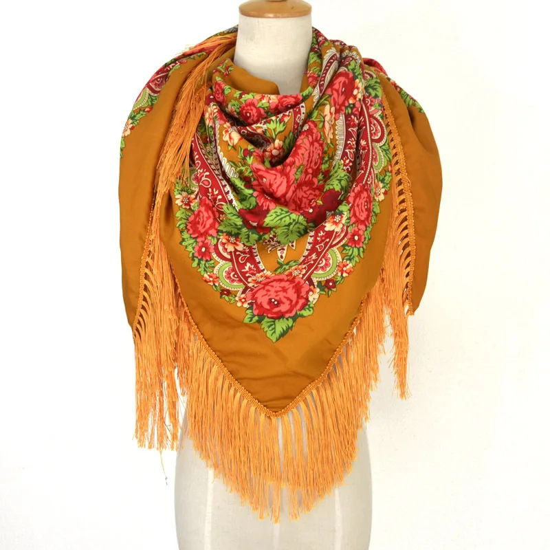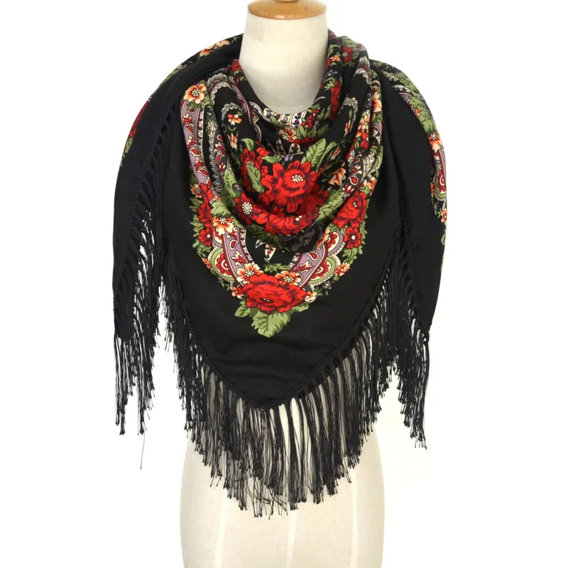 135*135 см Ретро украинский русский Национальный Шарф женский цветочный принт с бахромой шарфы женские большие квадратные шали обертывания