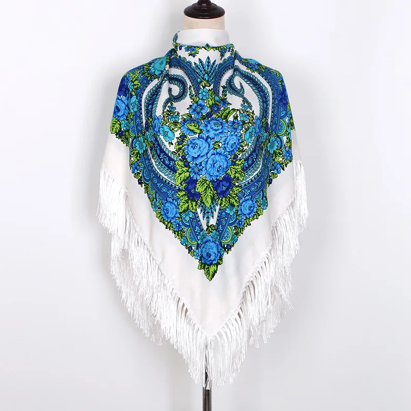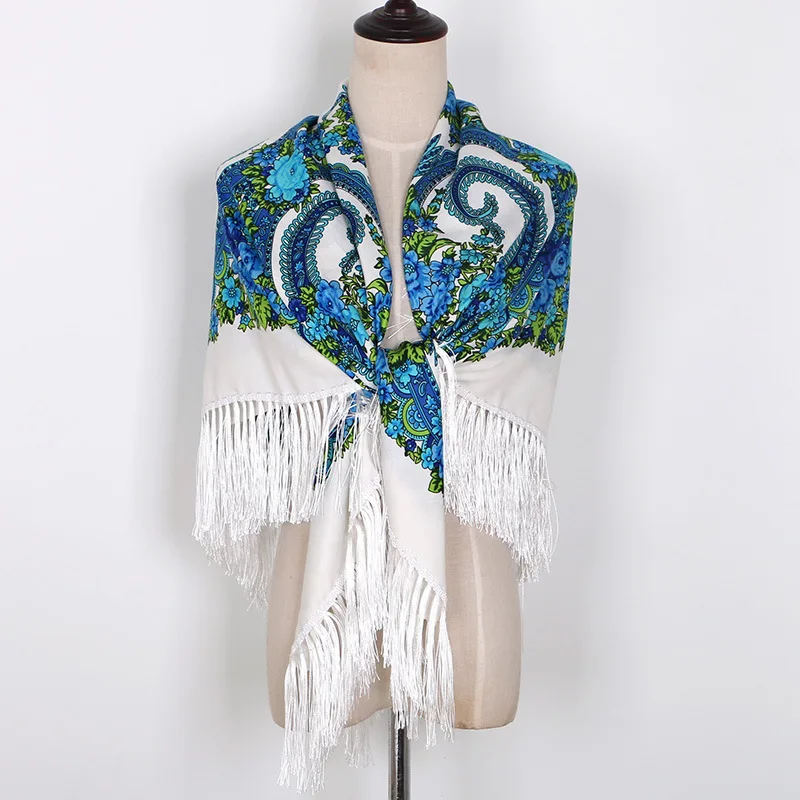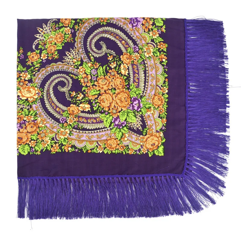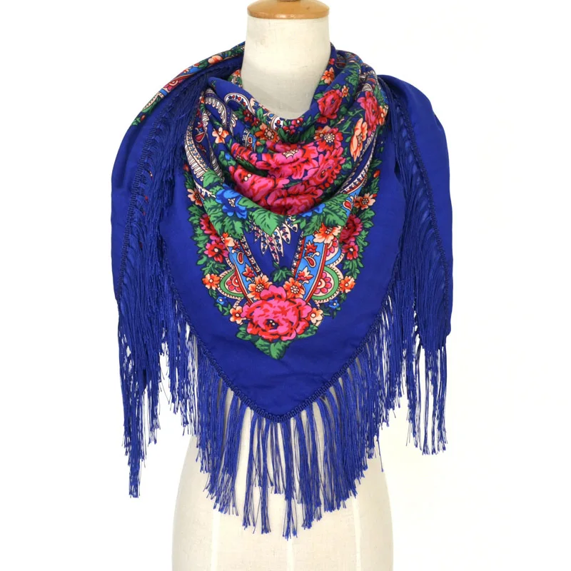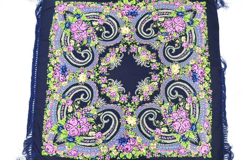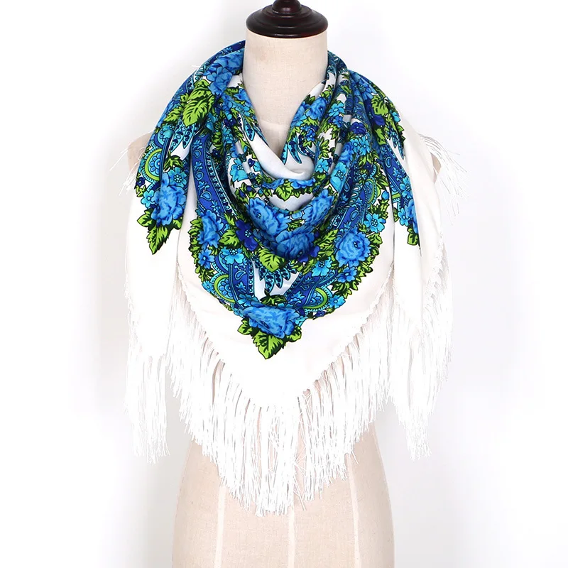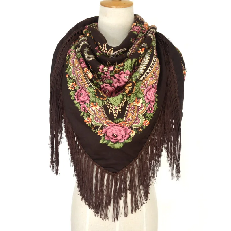 135*135 см Ретро украинский русский Национальный Шарф женский цветочный принт с бахромой шарфы женские большие квадратные шали обертывания