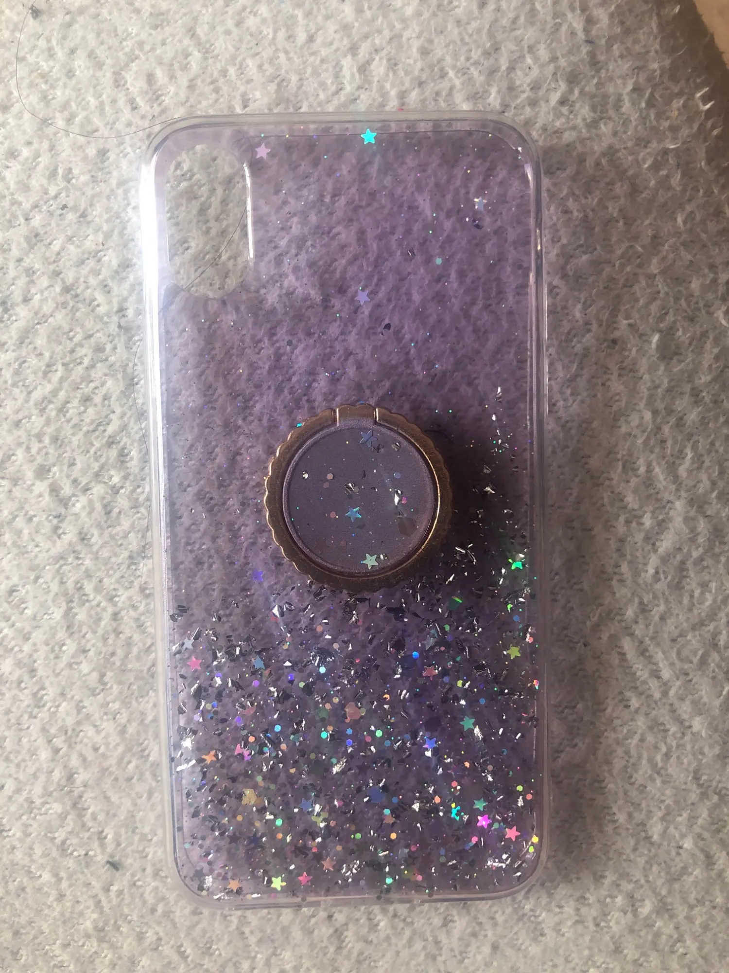 Чехол очень симпатичный. Колечко приходит отдельно, можно выбрать куда приклеить, но потом оно не крутится