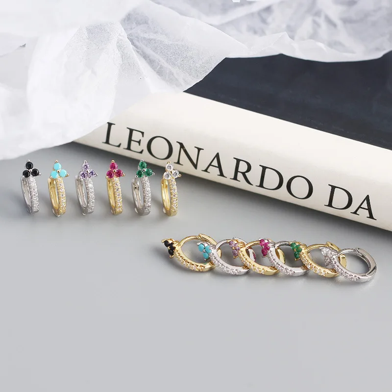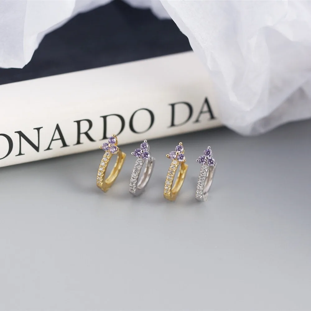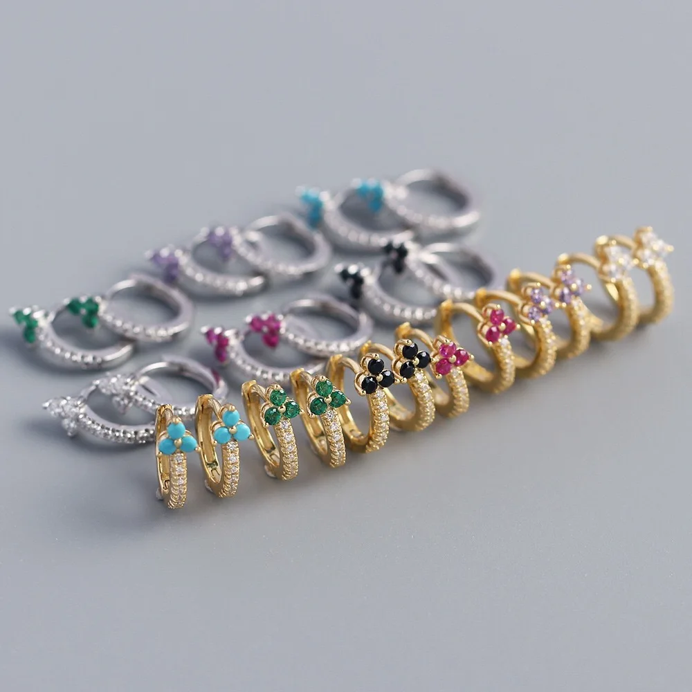 Серьги из стерлингового серебра 925 пробы, модные геометрические цветы, циркониевые круглые серьги, дикие милые женские ювелирные изделия для ушей для девочек