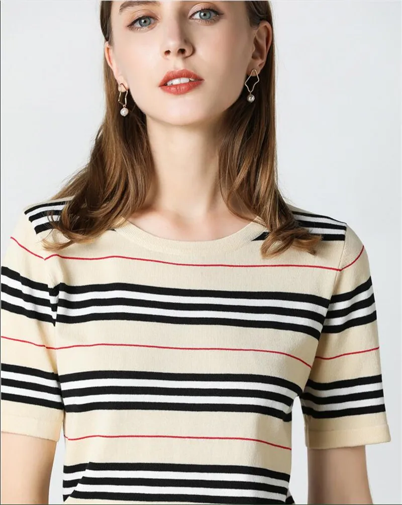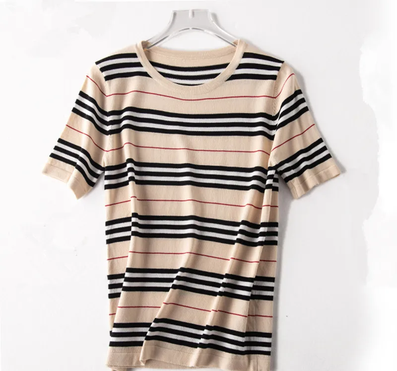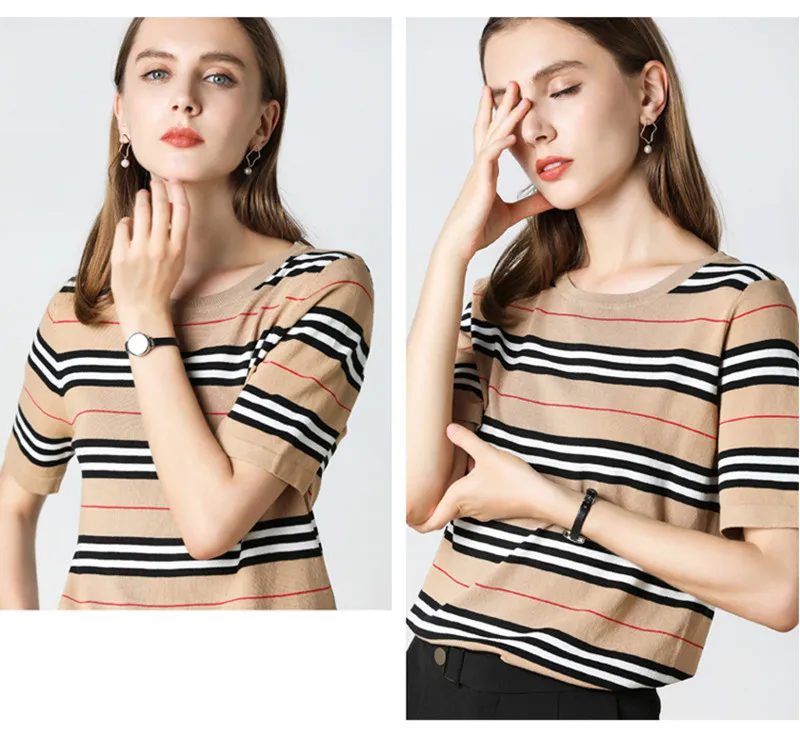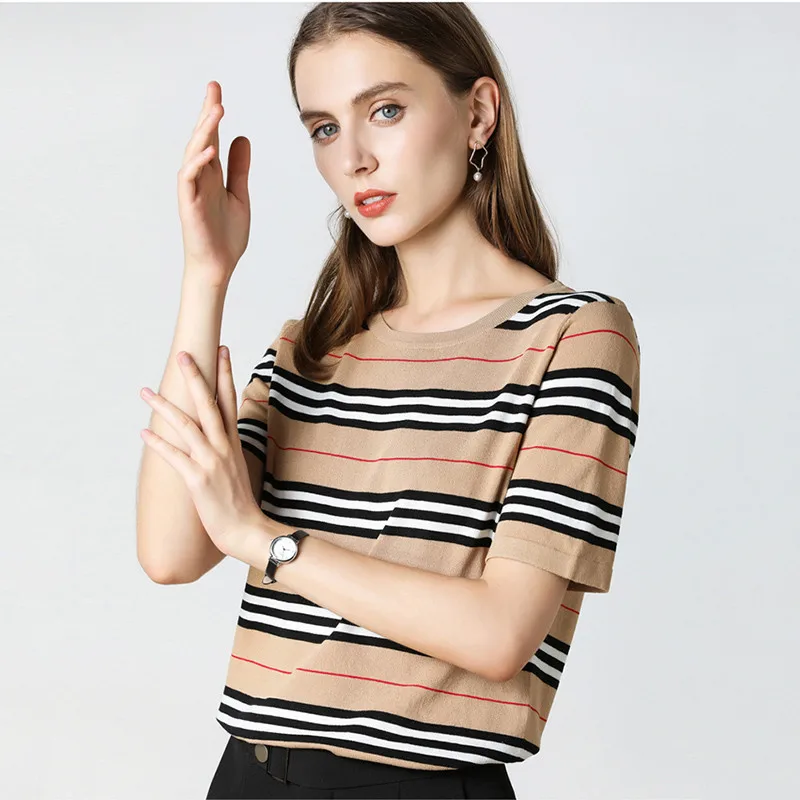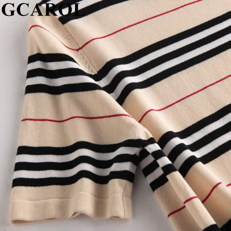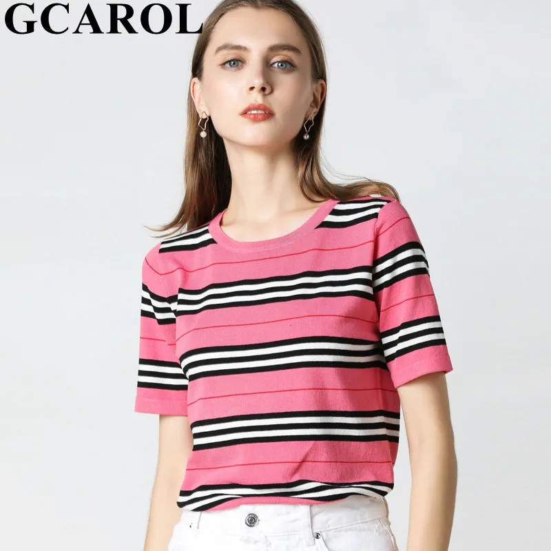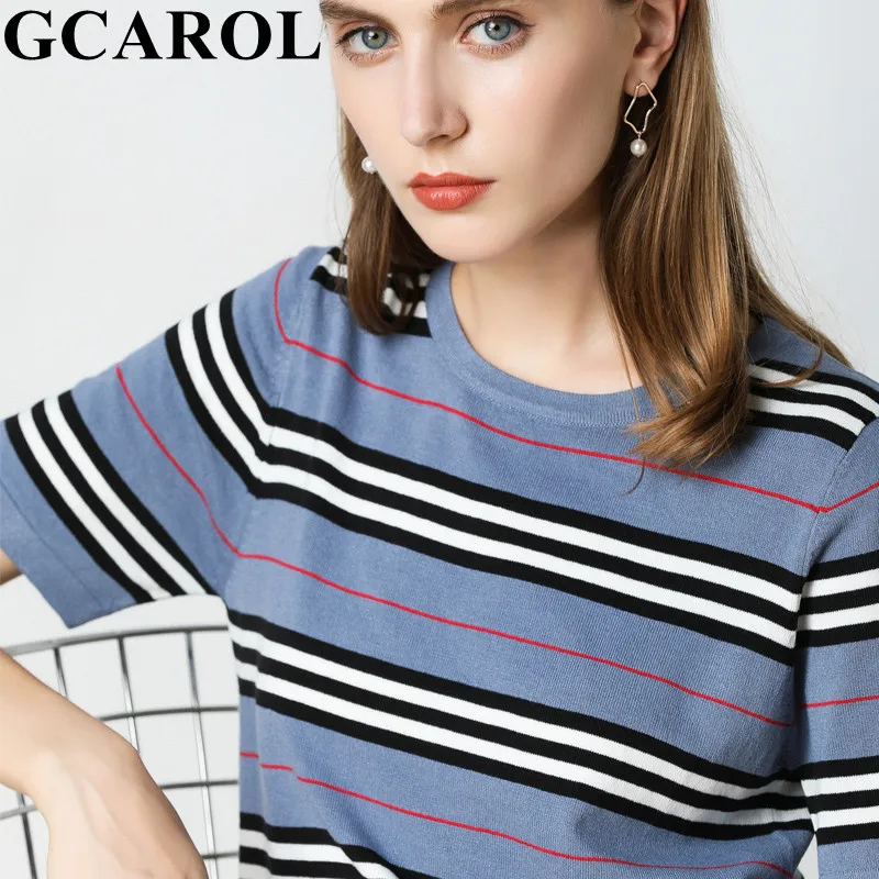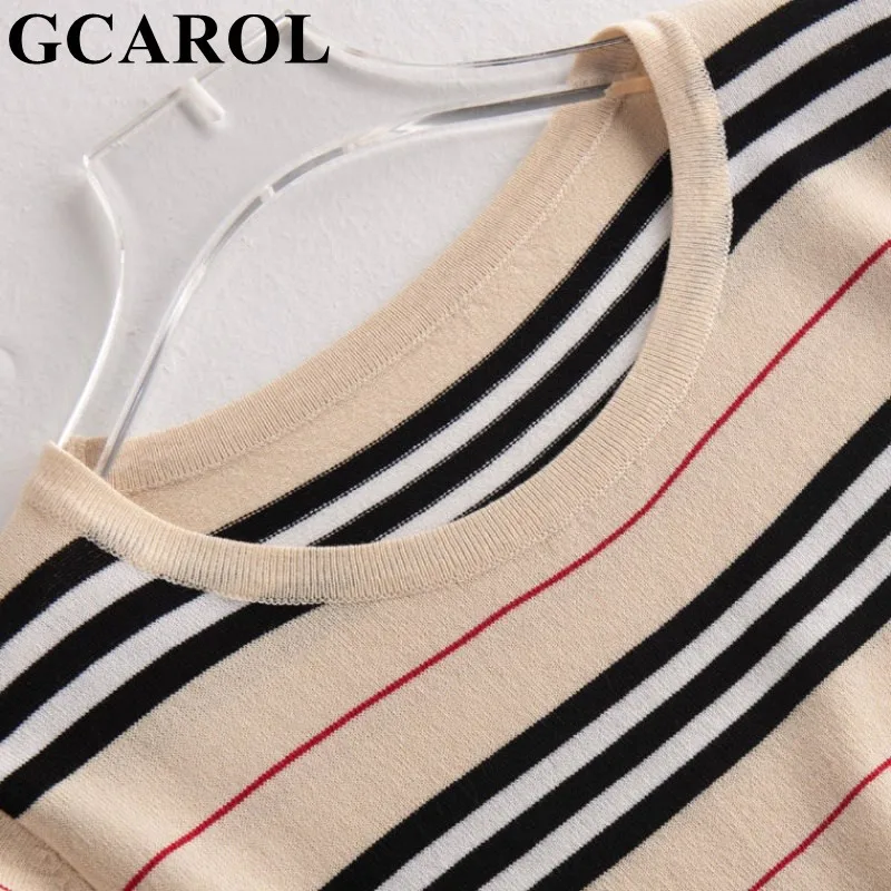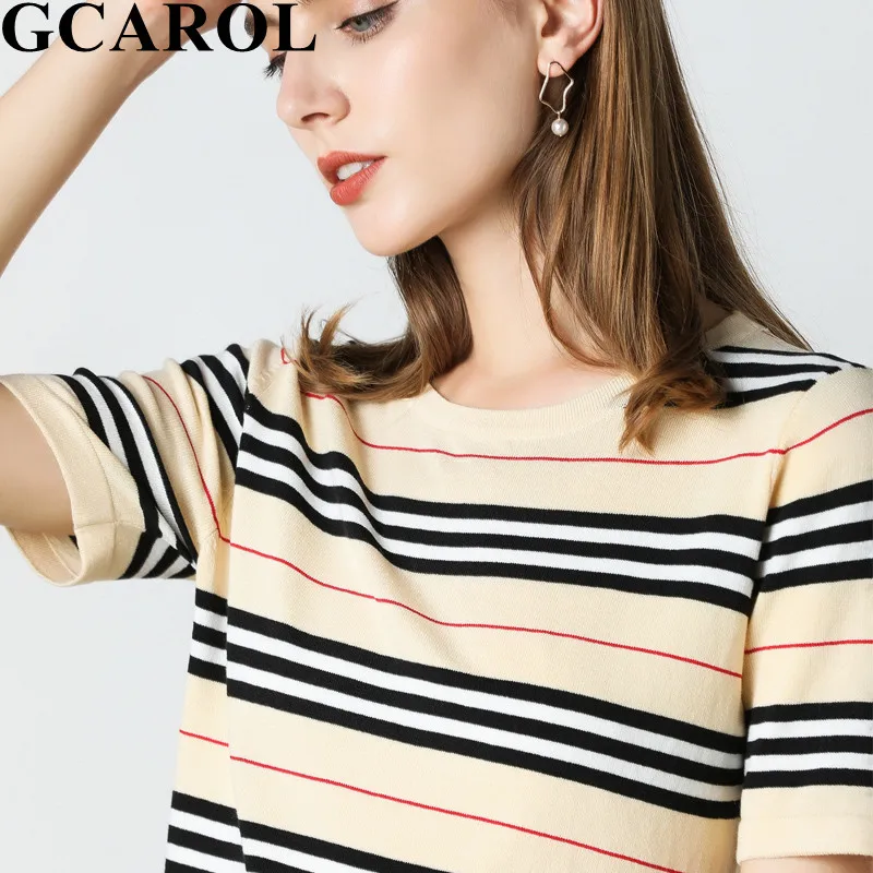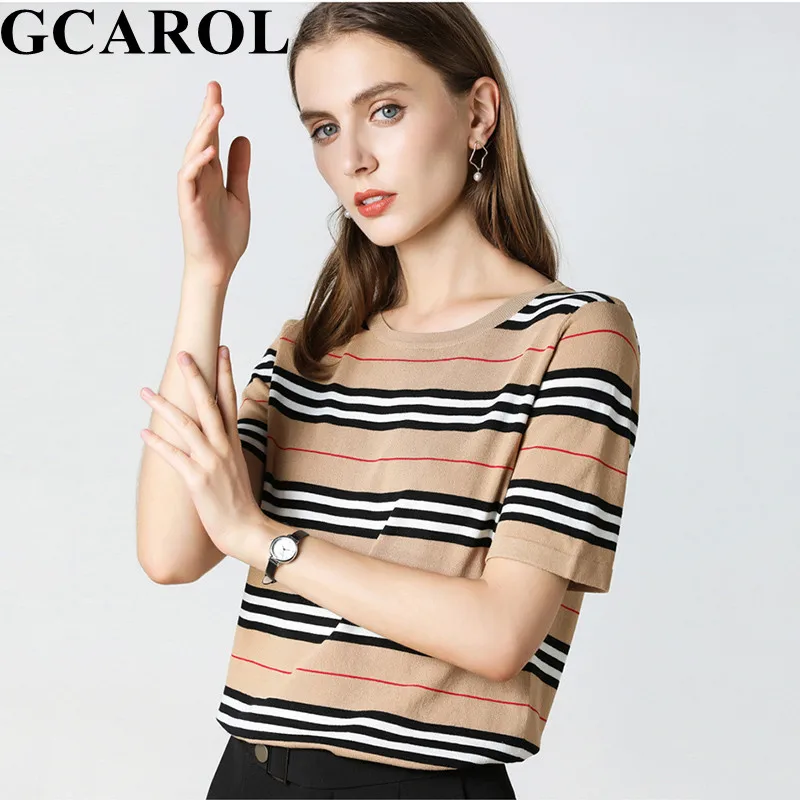 GCAROL Женская весенне-летняя полосатая шелковая футболка, Минималистичная простая стрейчевая дышащая трикотажная футболка, женская одежда 2XL