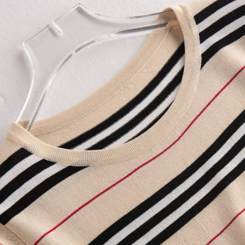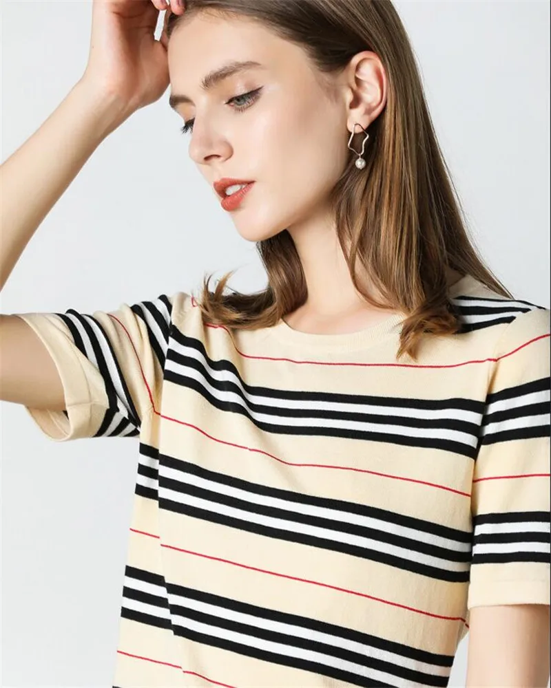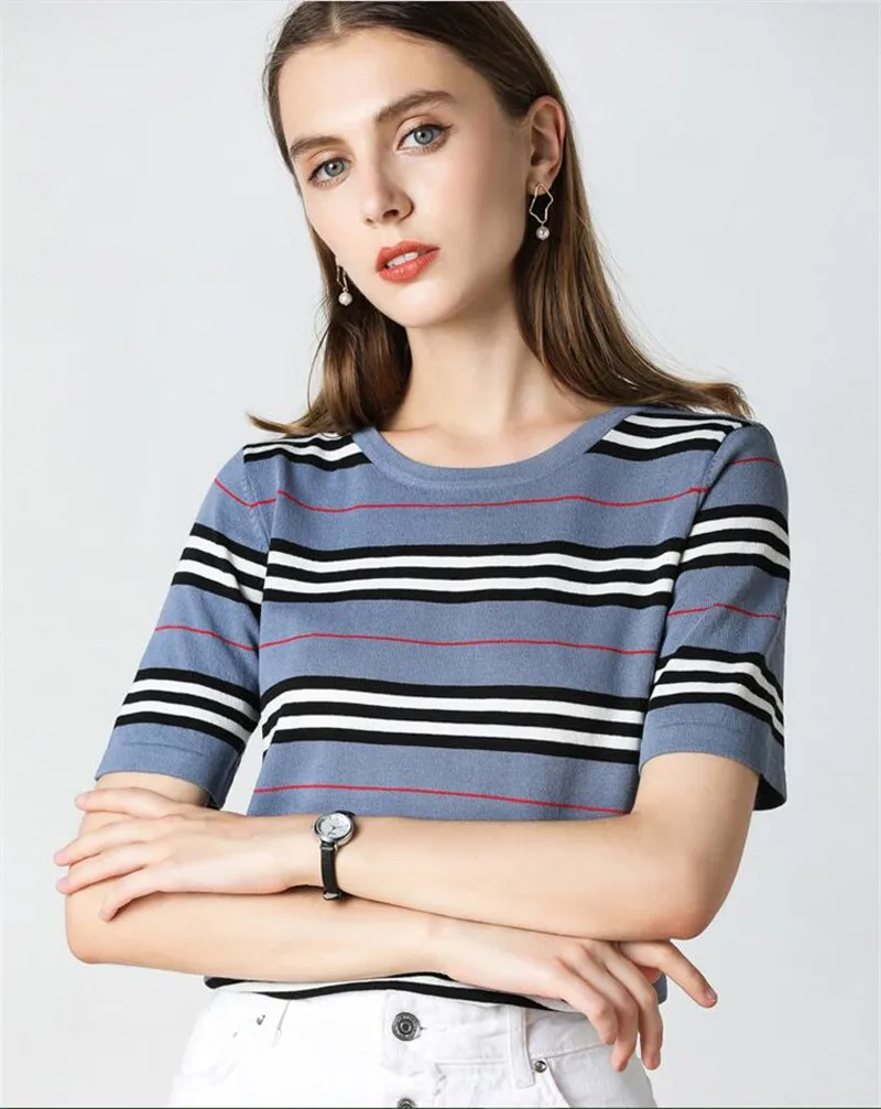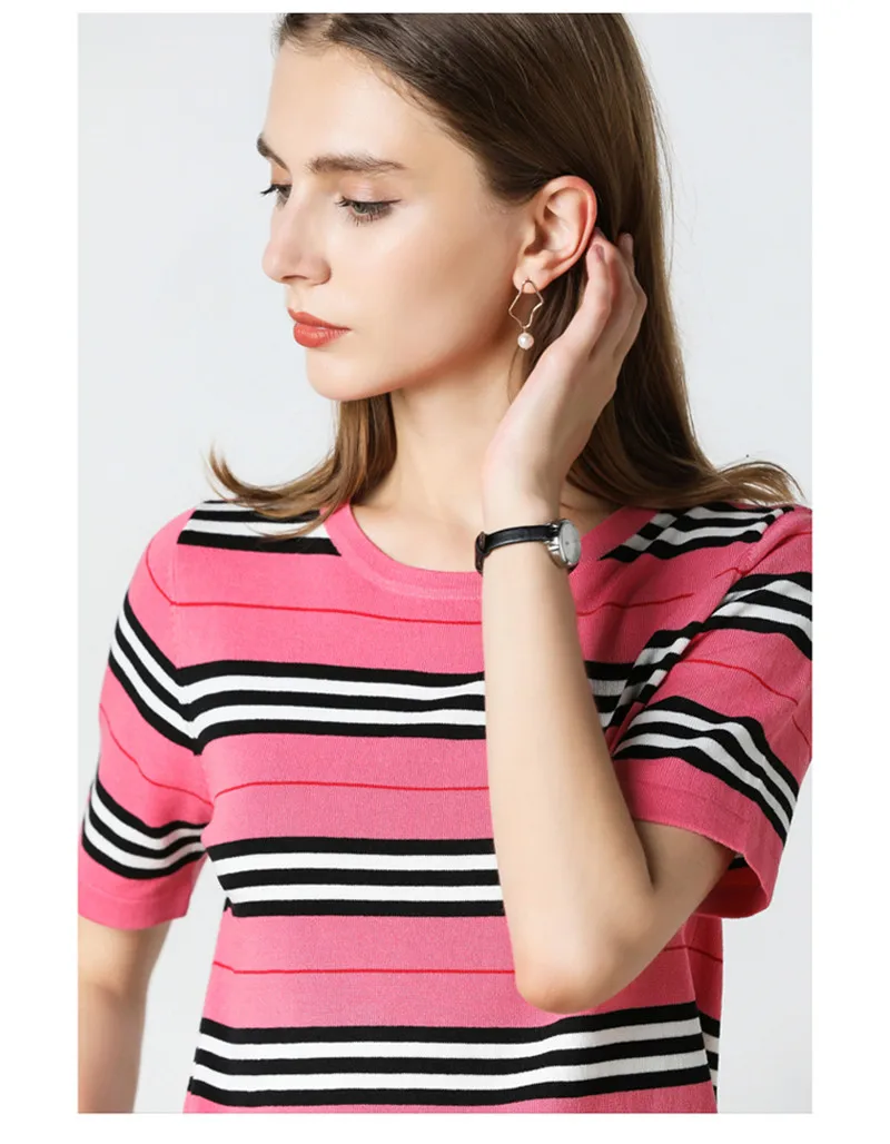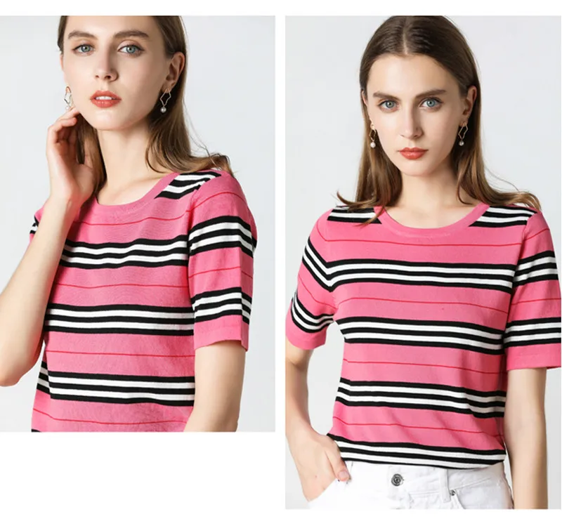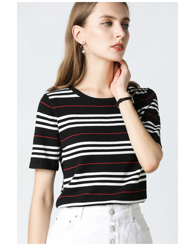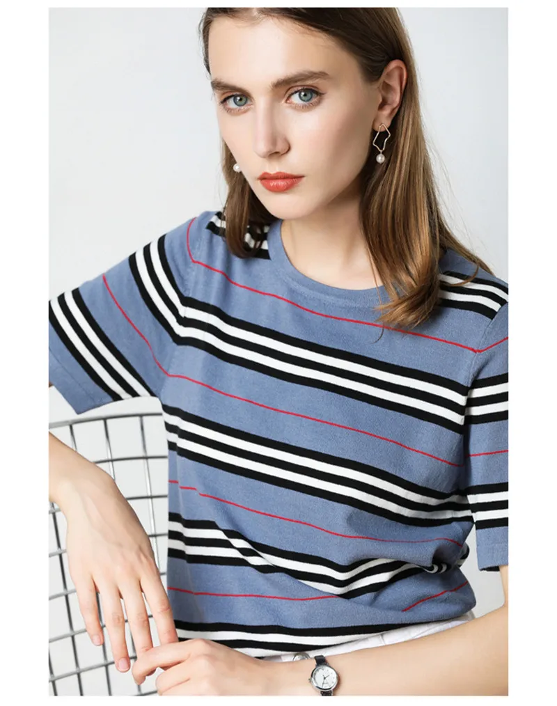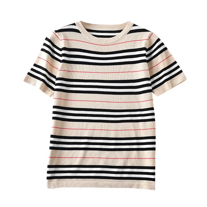 GCAROL Женская весенне-летняя полосатая шелковая футболка, Минималистичная простая стрейчевая дышащая трикотажная футболка, женская одежда 2XL