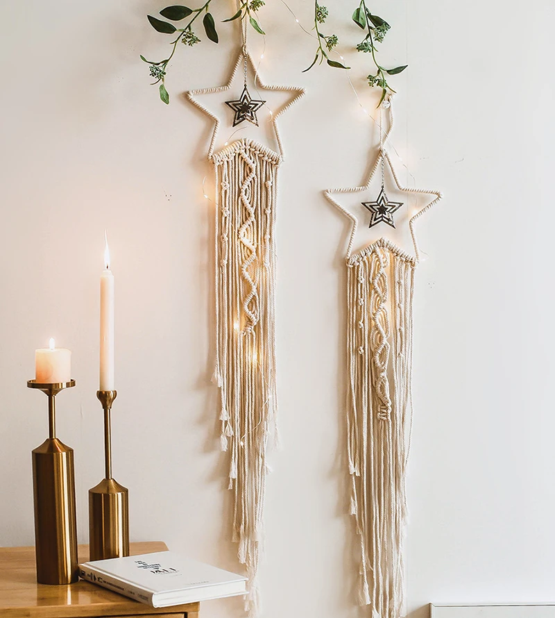 Скандинавская звезда, луна гобелен из макраме, украшение в стиле бо...