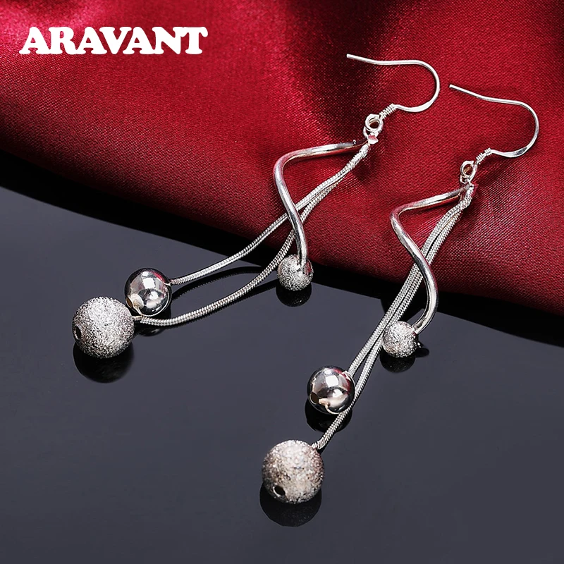 Серьги-подвески в виде змеи женские, висячие ювелирные украшения из серебра 925 пробы с крученым шлифовальным гладким шариком, длинные цепочки, свадебные ювелирные изделия